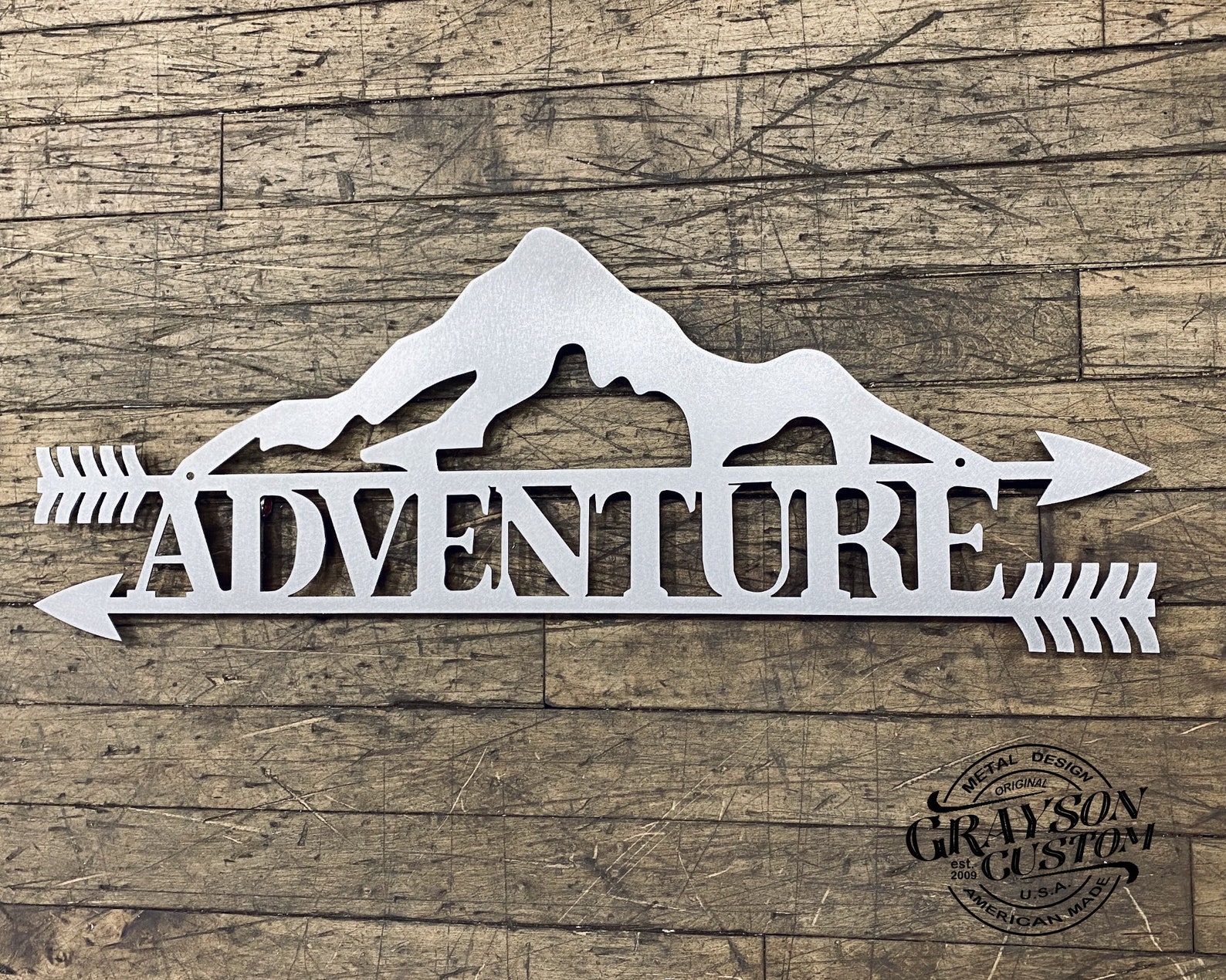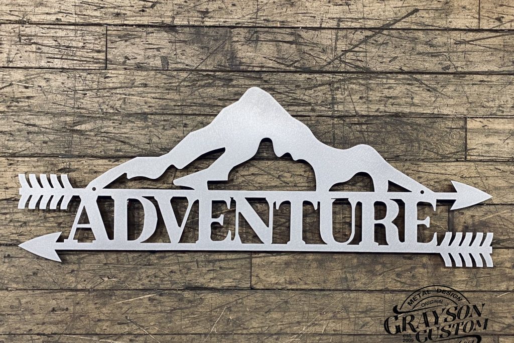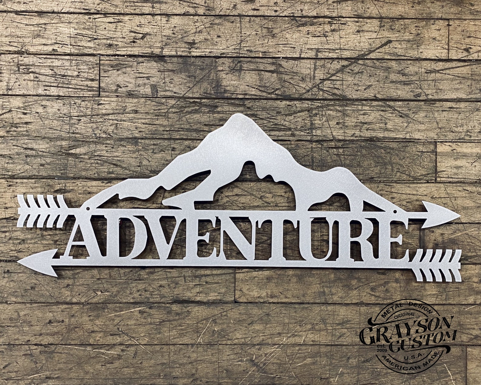 Double Arrow Mountain Metal Welcome Sign – Rustic Decor