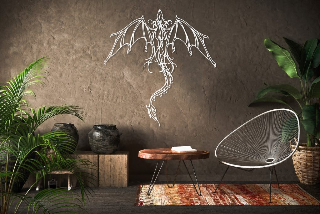 Dragon Metal Wall Art, Legendary Fantasy Dragon Art, Mythologic Wall Decor, Unique Tattoo Home Decor, Man Cave Game Room Sign, Gift for Him
