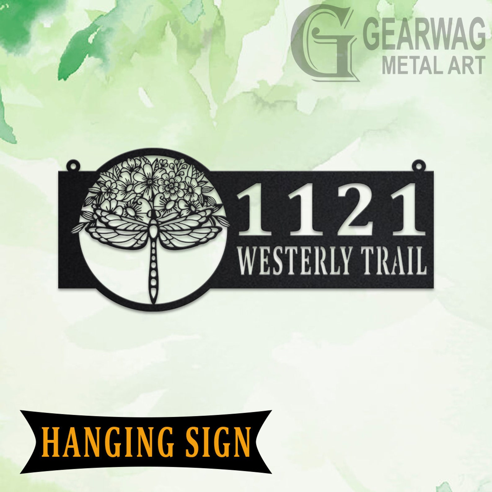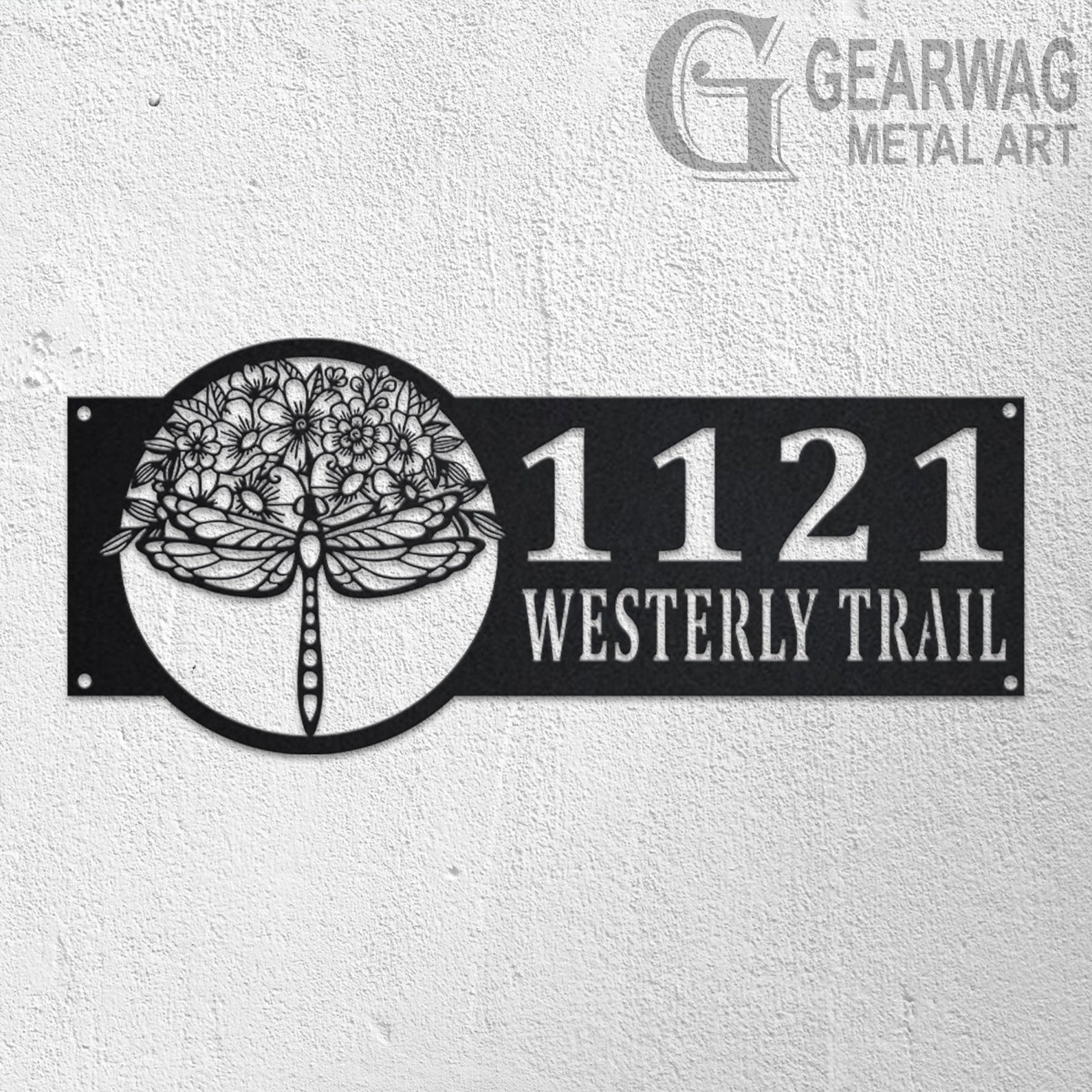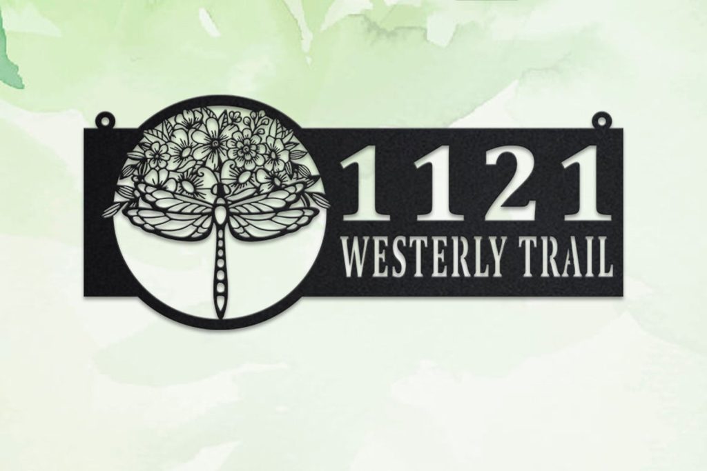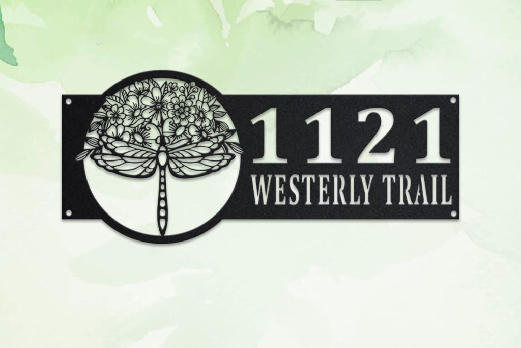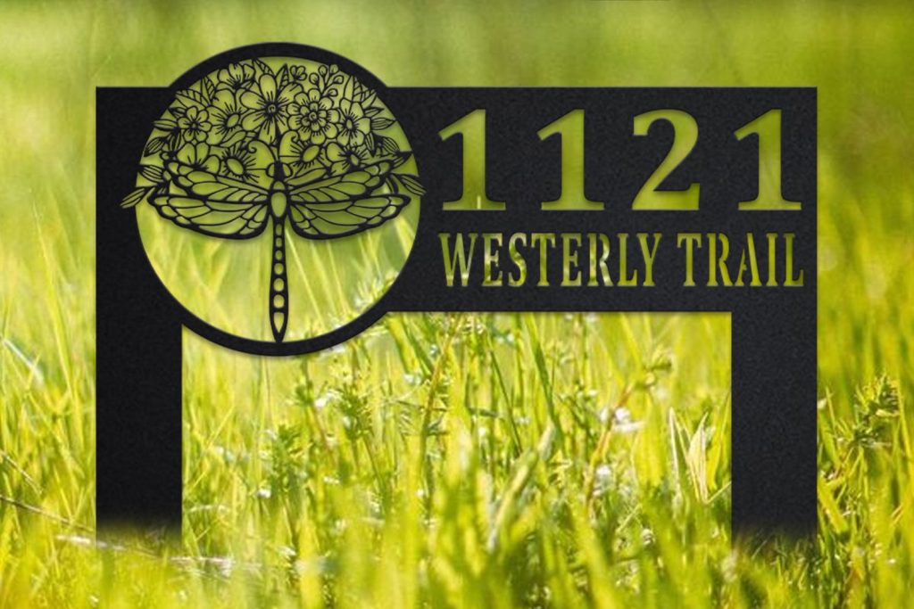 Dragonfly Address Sign – Custom Metal Plaque Decor