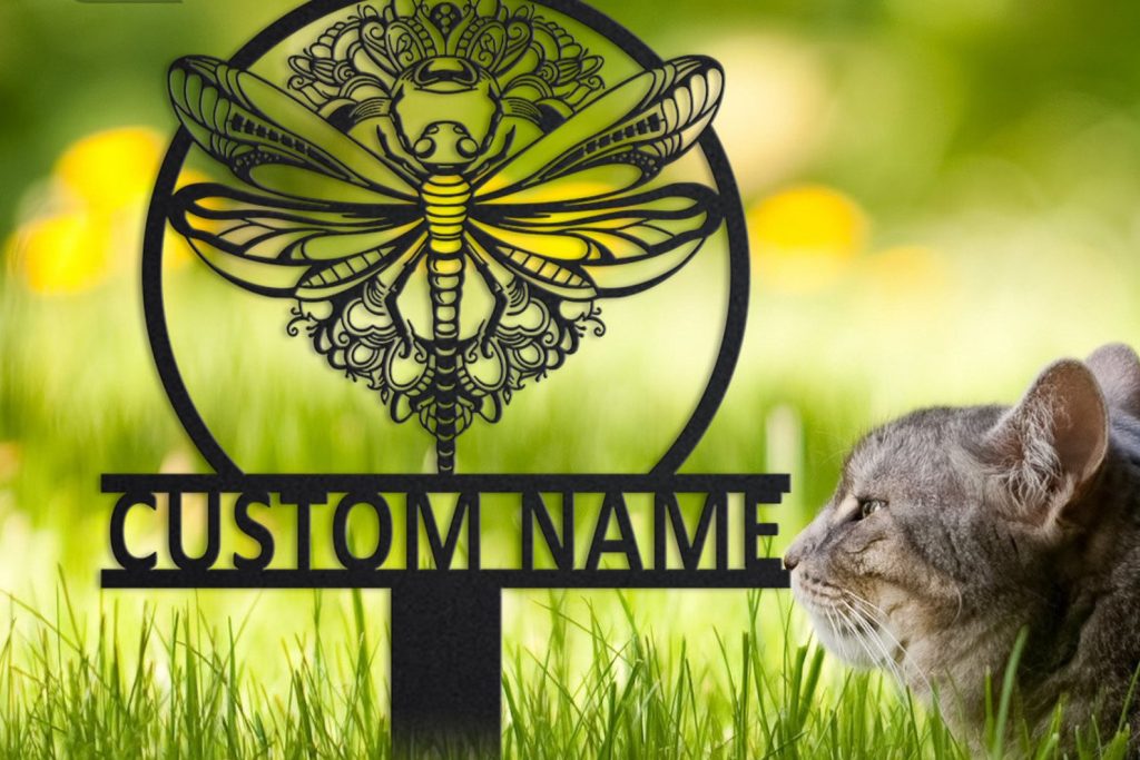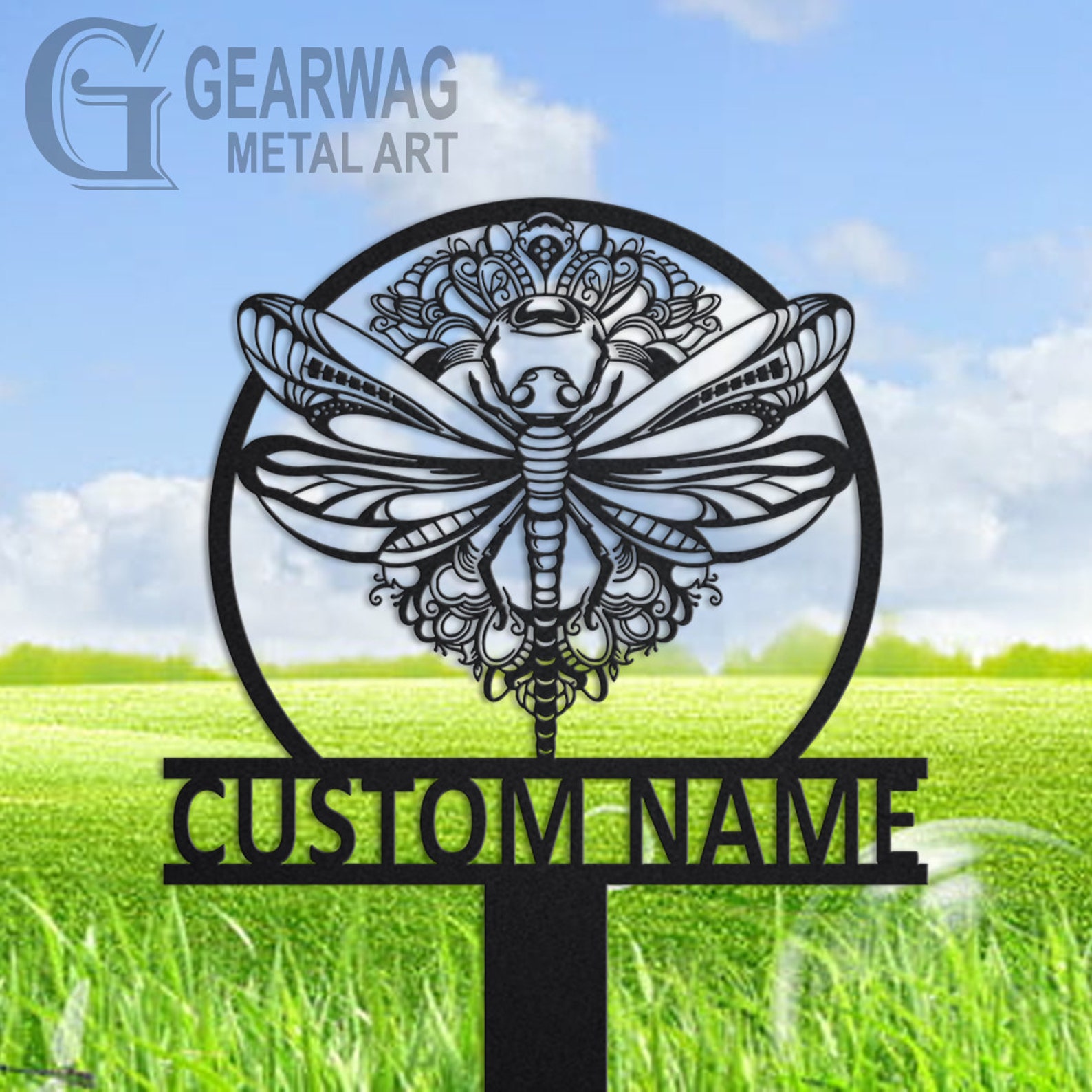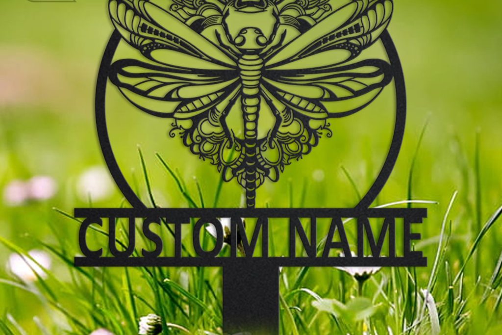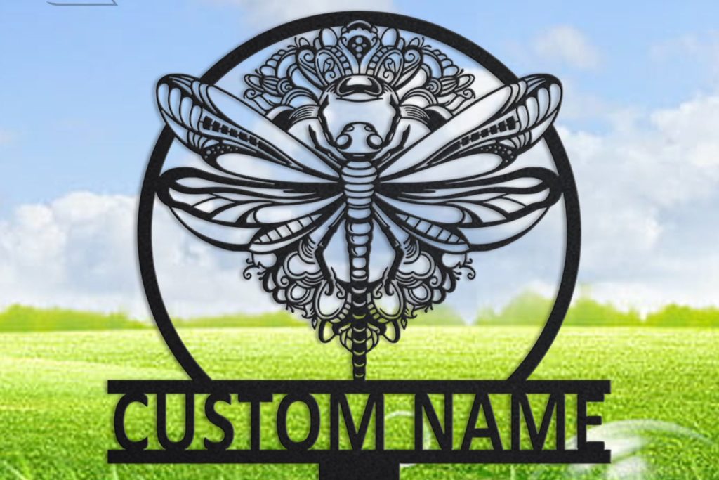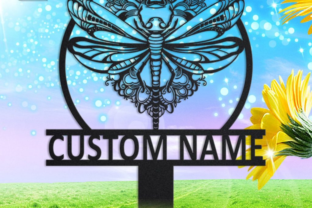 Dragonfly Garden Sign – Custom Metal Floral Stake