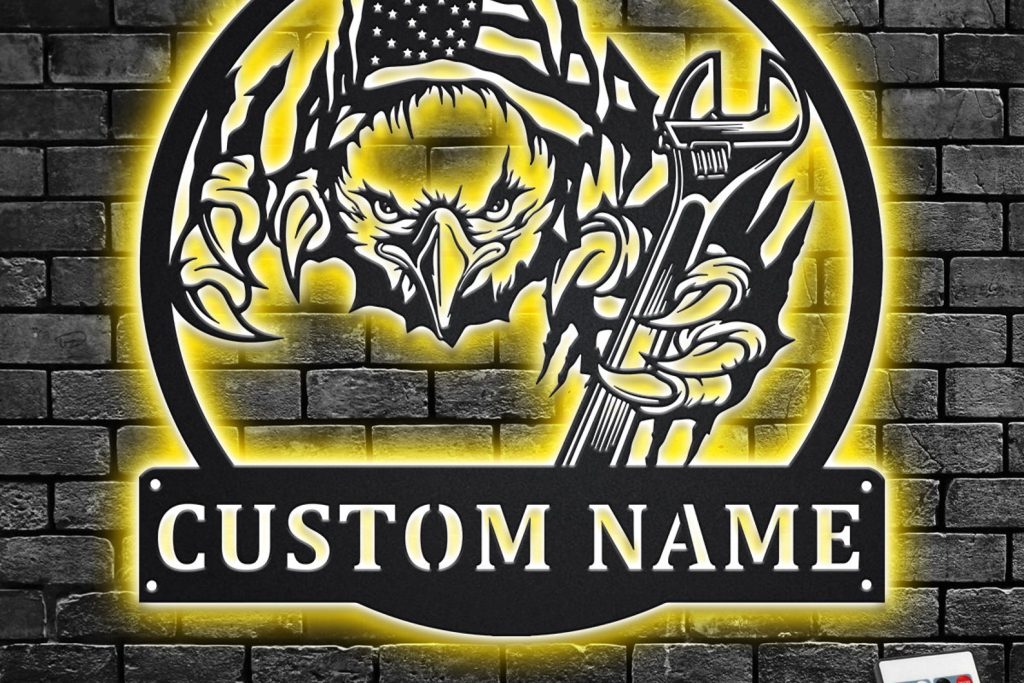 Eagle Mechanic Art – LED Personal Metal Garage Sign