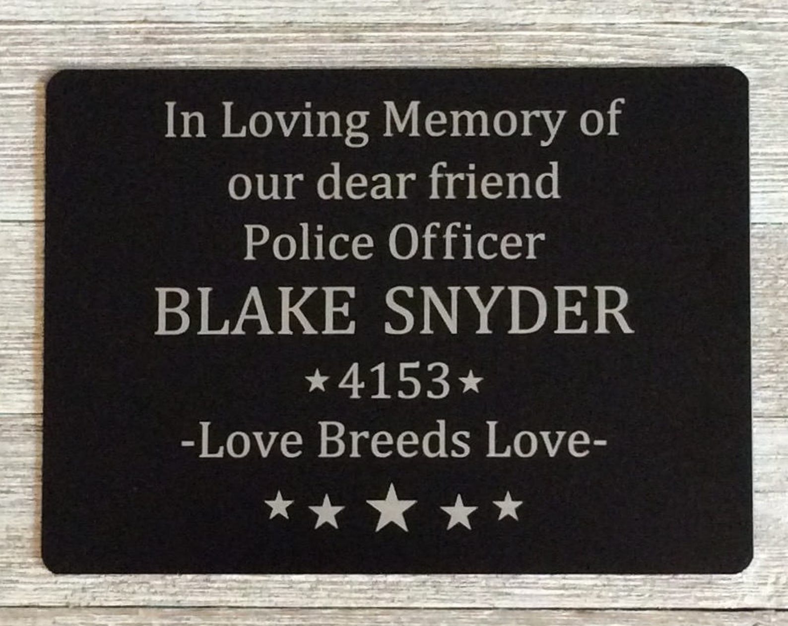outdoor metal plaque, 7" x 5" H- engraved black metal plate. Engraved with your custom text.