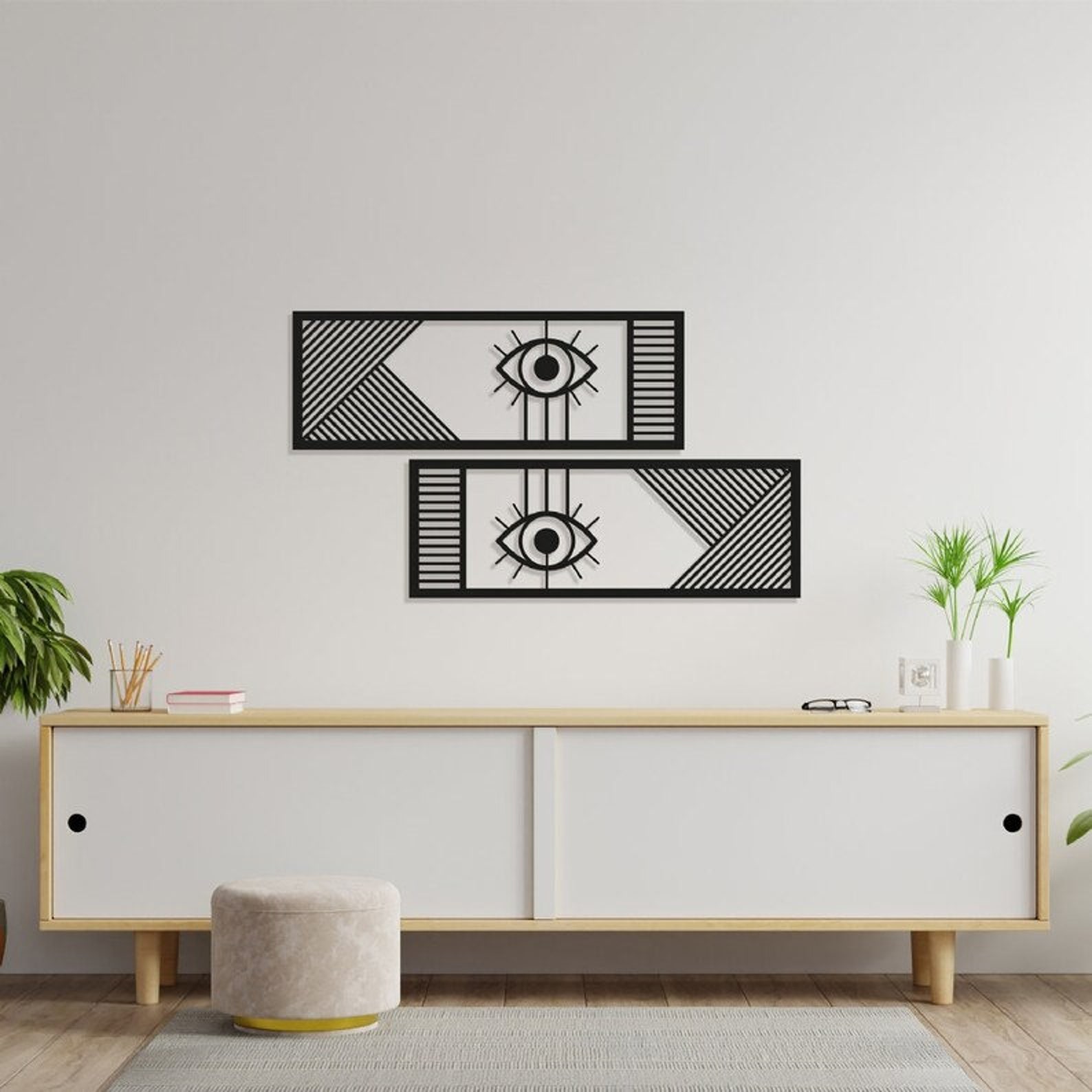 3 pieces Eye metal line wall art is made of high-quality steel and powder coating with smooth edges.