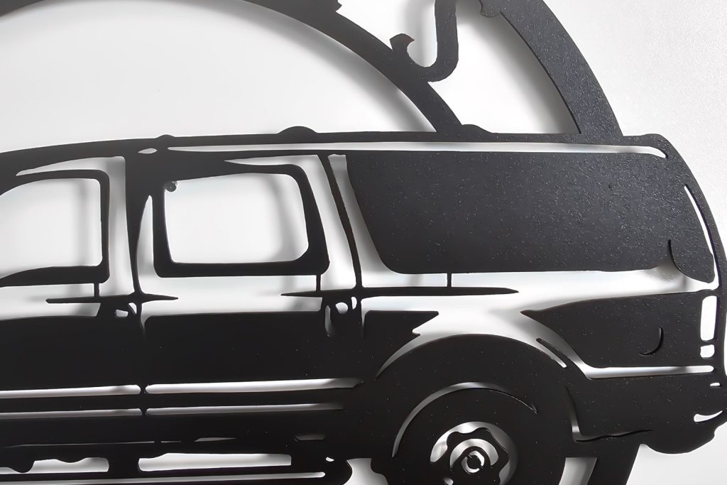 After purchase your order goes through our cutting process where it is designed, programmed, then precisely cut by our top of the line Craftsens fiber lasers. Me then make sure the metal is properly cleaned & cut before going to the next step. Now that the sign has been cut, cleaned it can now go through our powder coating system where your sign is hung and ran though our automated powder line so your sign comes out looking perfect.