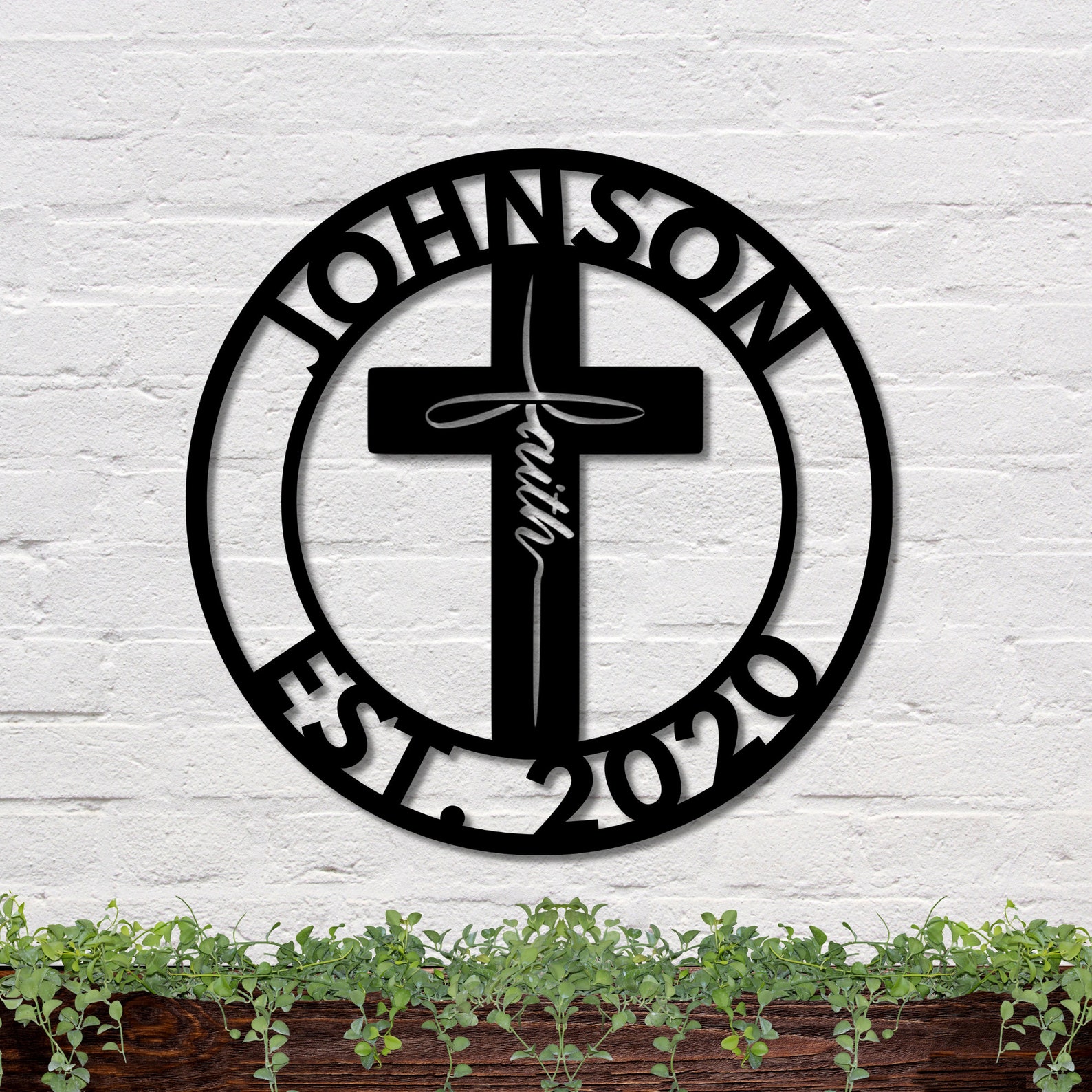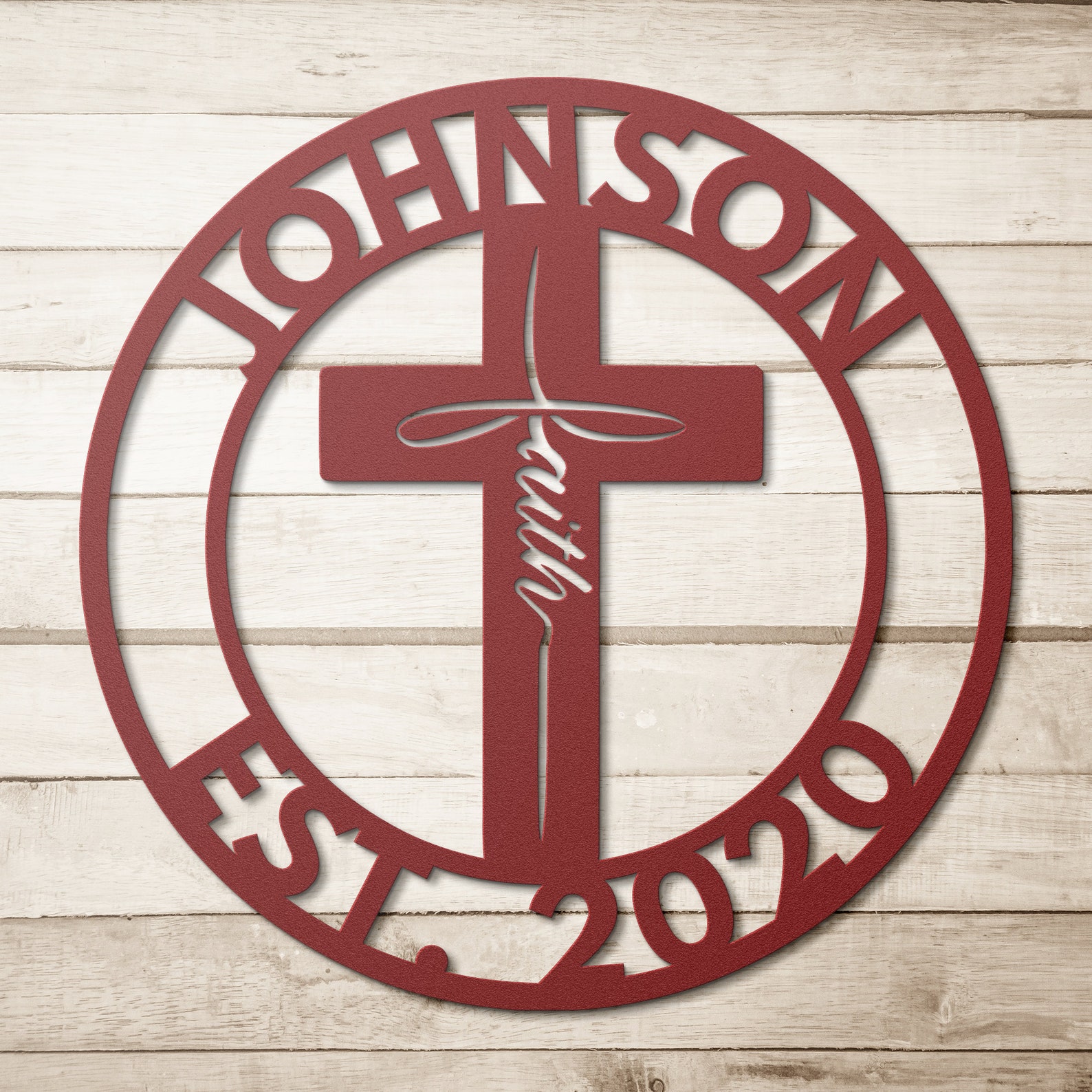 Be the first to review “Faith Cross Metal Sign with Family Name”