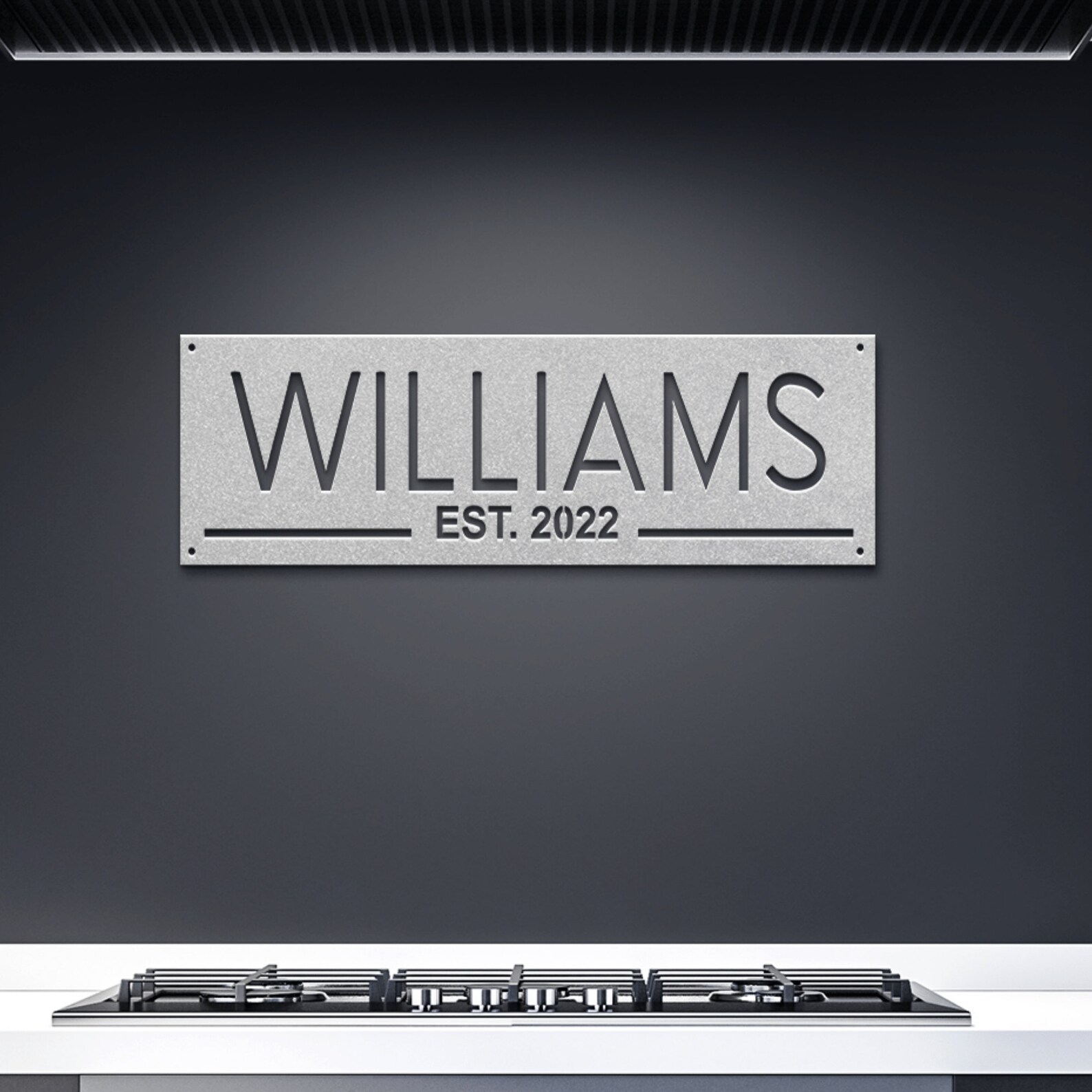 Our metal wall art is an impressive way to personalize any space in your home. This is the perfect gift for yourself or a loved one; laser-cut from 18-Gauge High-Quality steel, powder coated in your choice of 5 colors, and beautifully cut and etched with your family name.