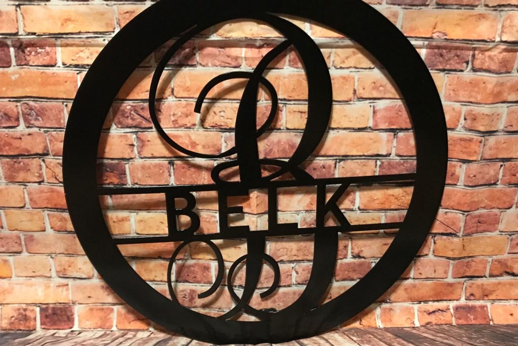 Monogram sign made out of 16 gauge steel then powder coated in the color of your choice.