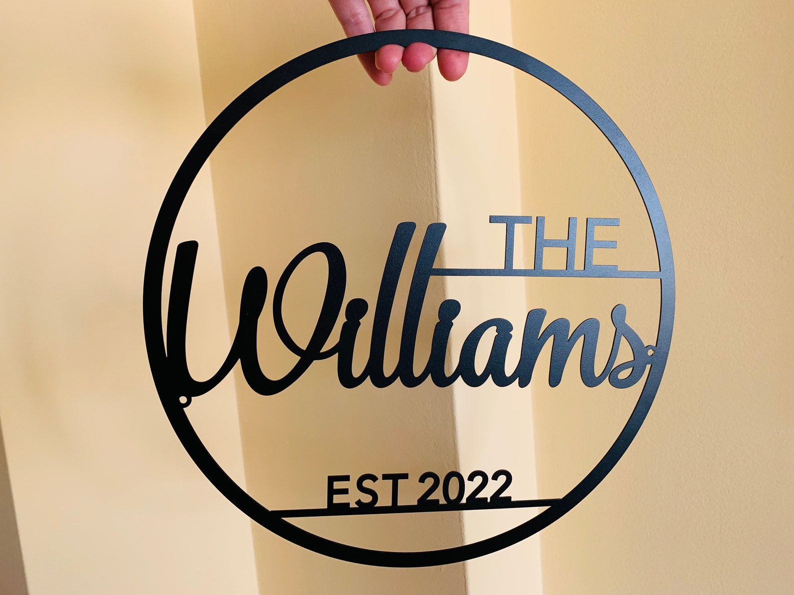 Personalized monogram with the family name and date established.