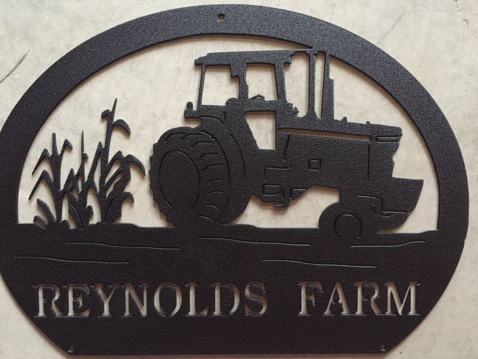 Farm Address Sign – Metal Corn & Oliver Tractor