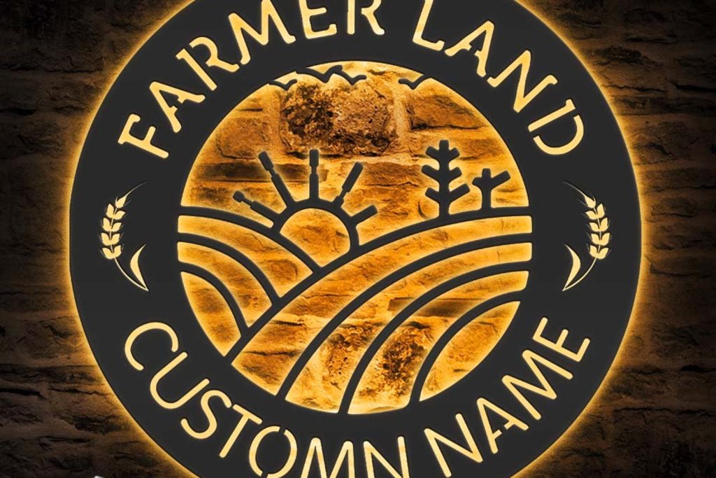 Be the first to review “Farm Land Metal Wall Art with LED – Personalized Grain Farmhouse Name Sign”