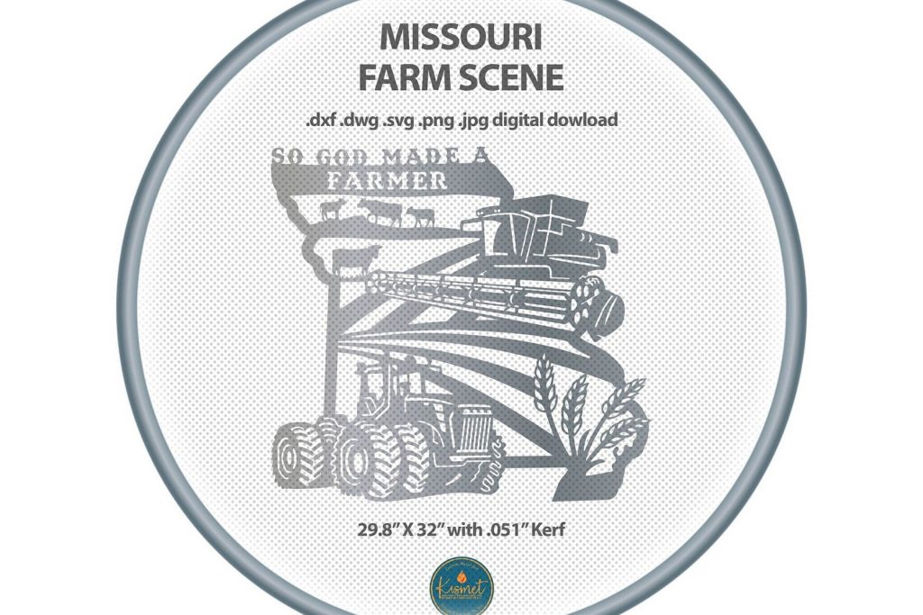 Introducing our missouri sign laser cutting files for cnc, a detailed god made a farmer sign for metal. This farm and combine sign svg, tractor dxf for laser cutters file bundle includes svg jpg png dwg (r14 & 2018) and dxf files (r14 & 2018) for a full collection of file formats to suit your needs. These versatile cutting files are perfect for creating custom plasma cut ranch signs on your cnc machine and feature clean lines and minimal nodes; they have been sheetcam tested for tolerances.