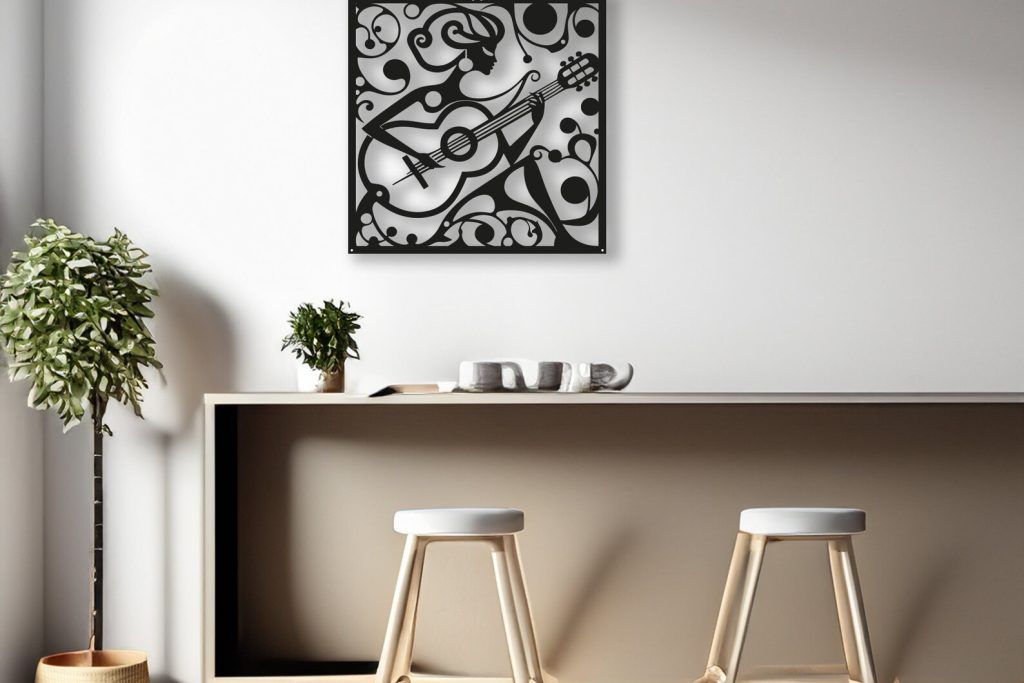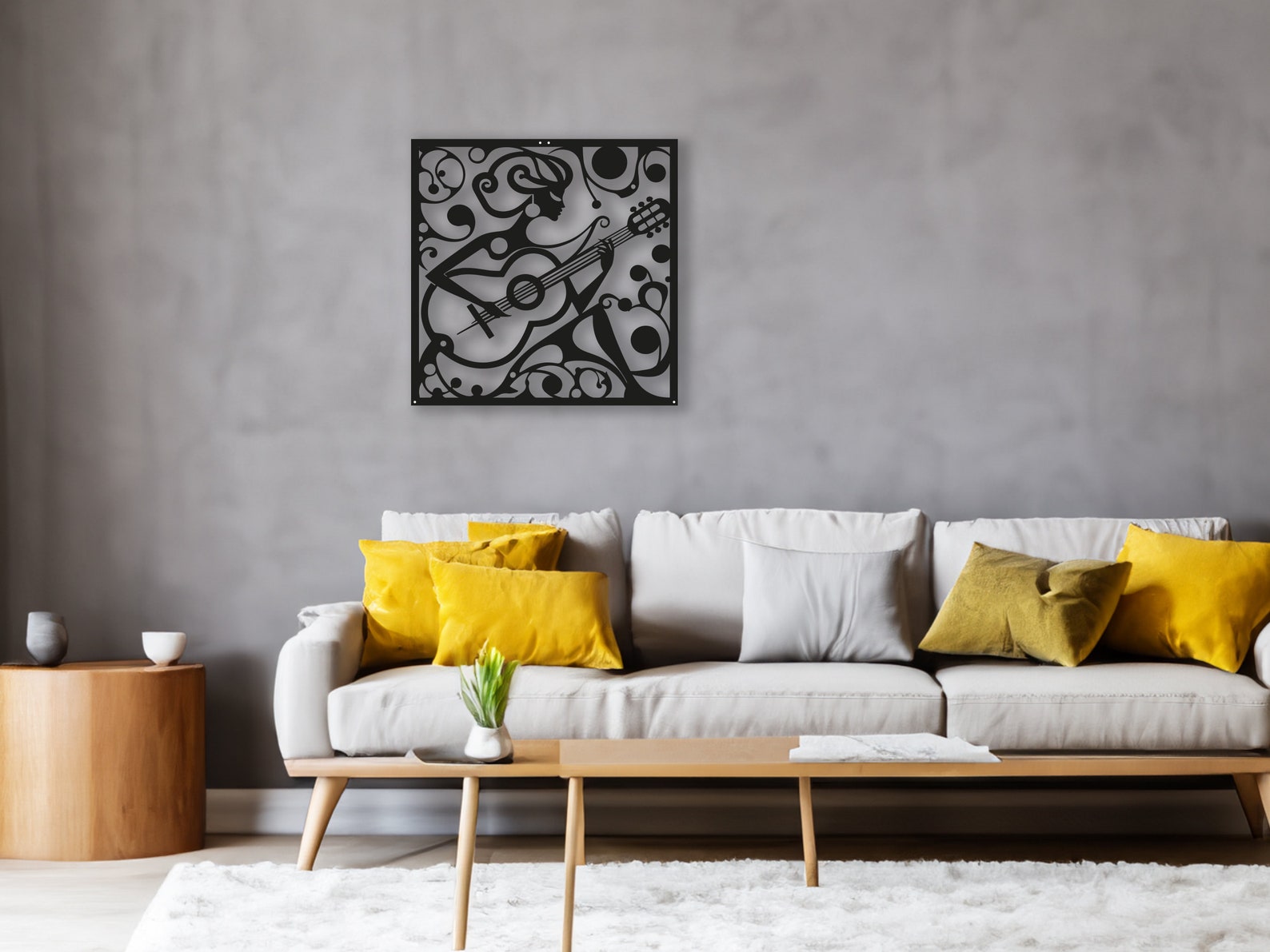 Female Musician Metal Wall Decor – Aesthetic Wall Decor for Music Lovers-Apartment Metal Wall Art – Man Cave Wall Decor – Guitarist Wall Art