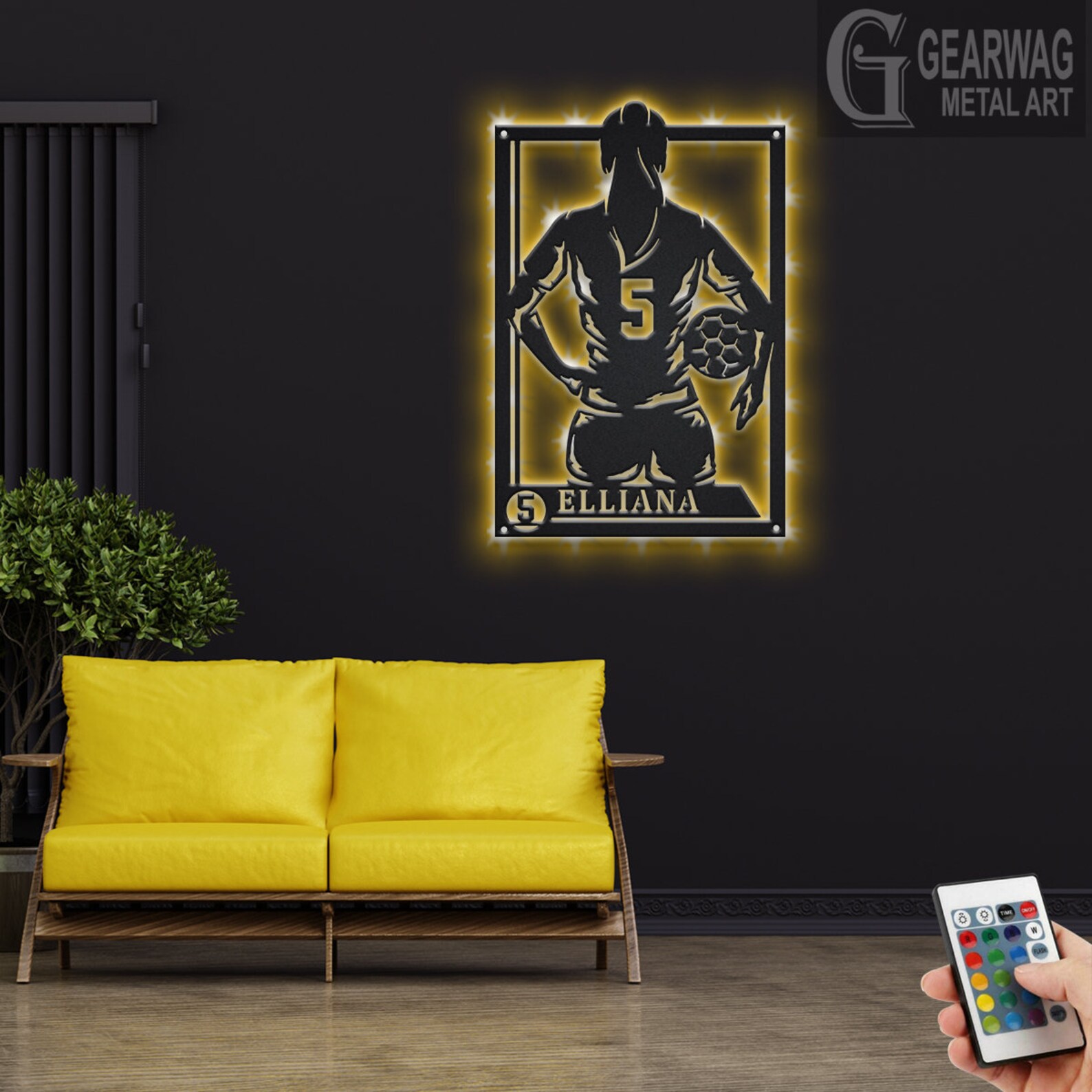 Female Soccer Metal Sign with LED, Personalized Decor
