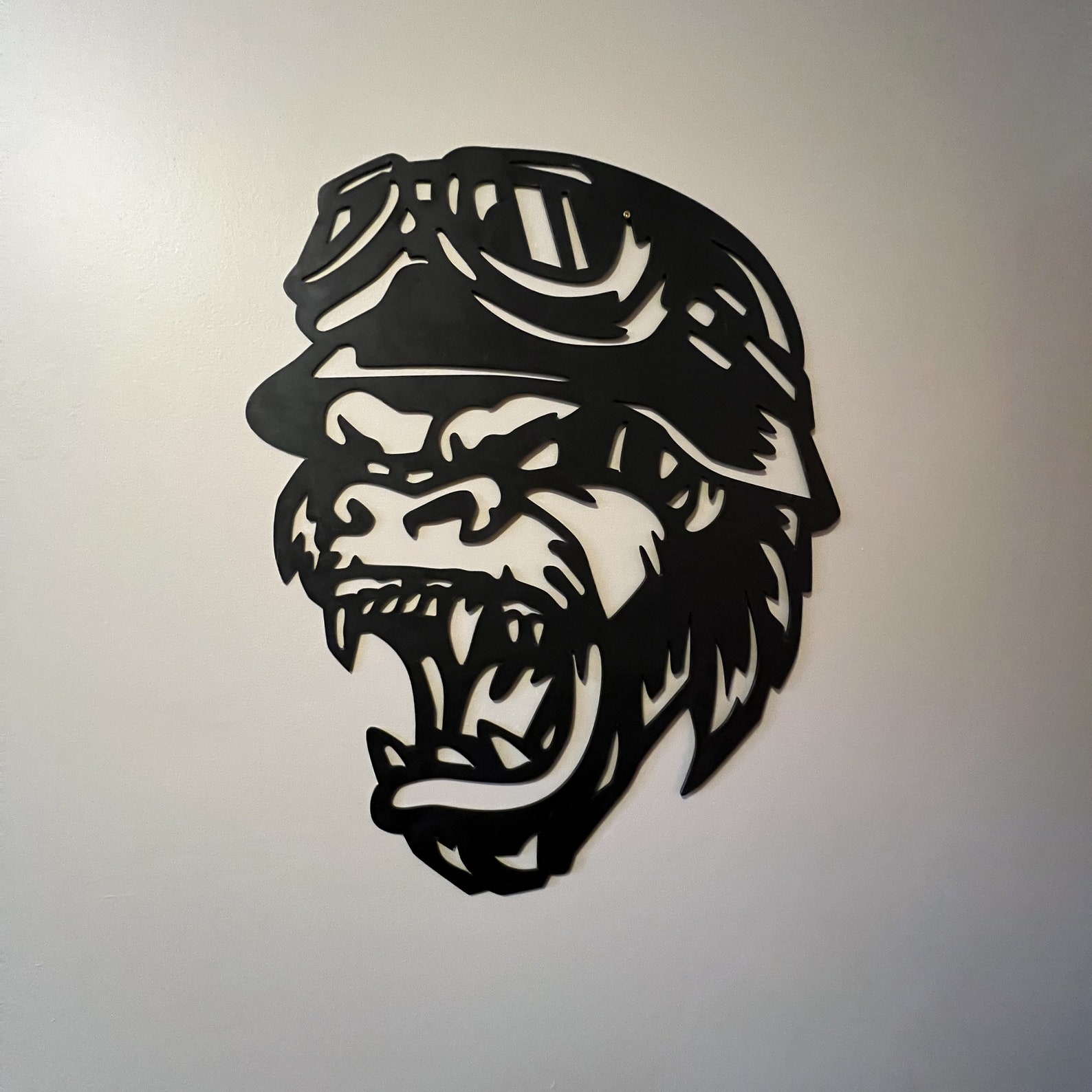 Unleash the wild with our Badass Gorilla Aviator Metal Sign, handcrafted by Metalcore Welding & Repair. Laser-cut from durable black metal, this striking piece features a gorilla donning aviator sunglasses, making it a bold addition to your space. Each sign is custom cut to order, offering you the flexibility to choose the perfect size for your decor.