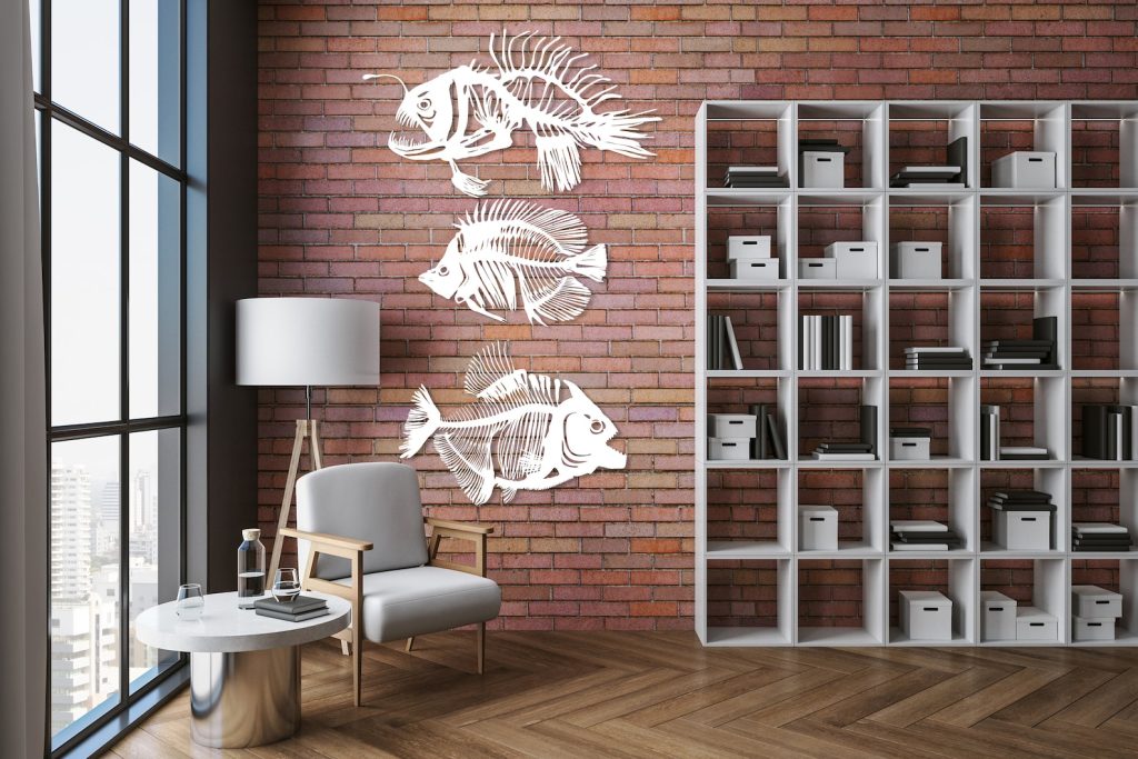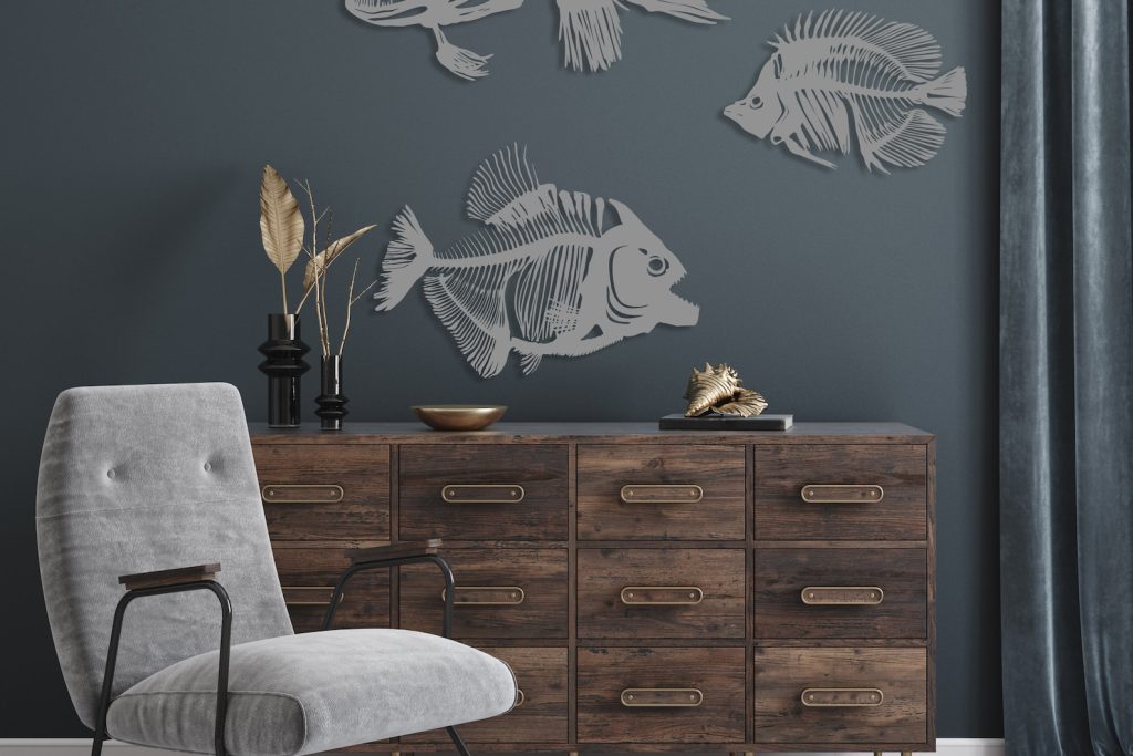 ish Metal Wall Art, Fishbones Wall Decor, School of Fish Decor, Fish Skeleton Decor, Bathroom Decor, Nautical Gift Wall Sign, Interior Decor
