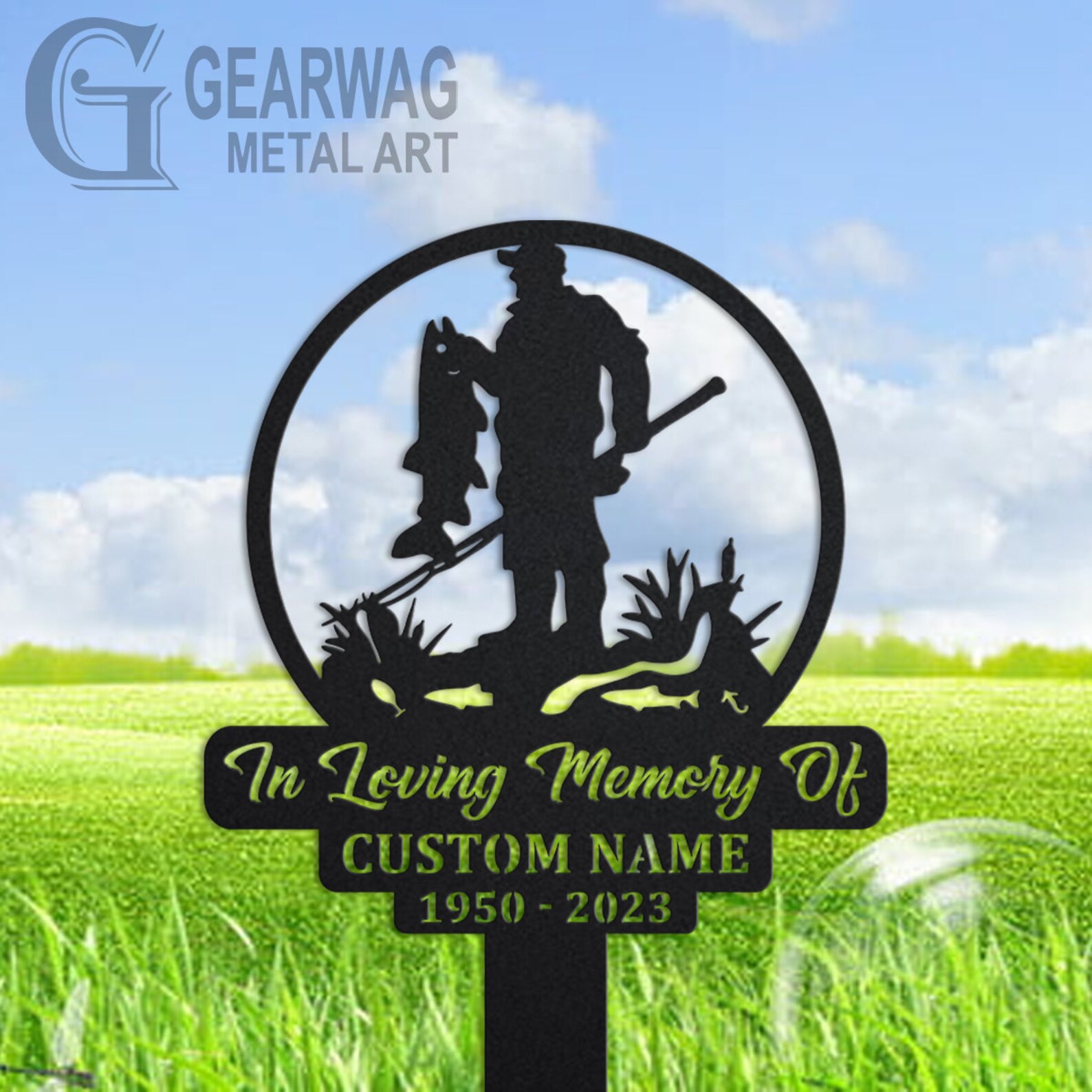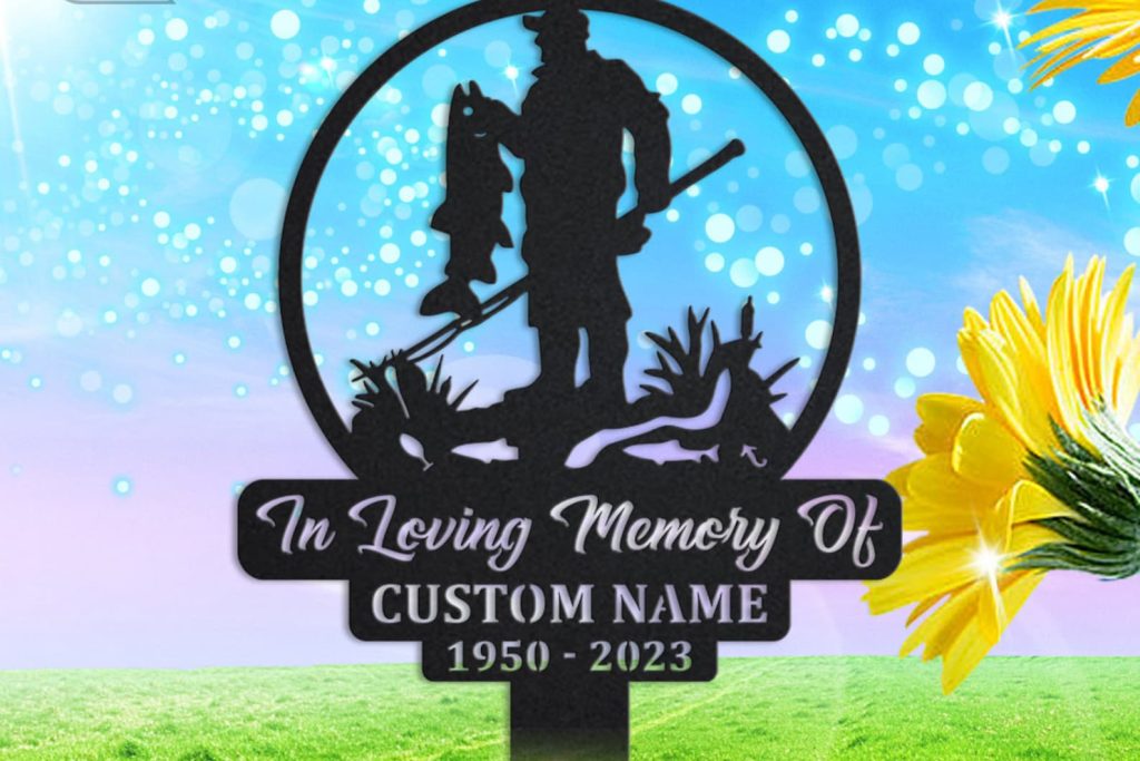 Fisher Memorial Stake – Custom Metal Memory Fisherman Sign