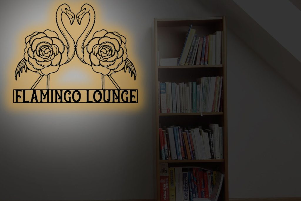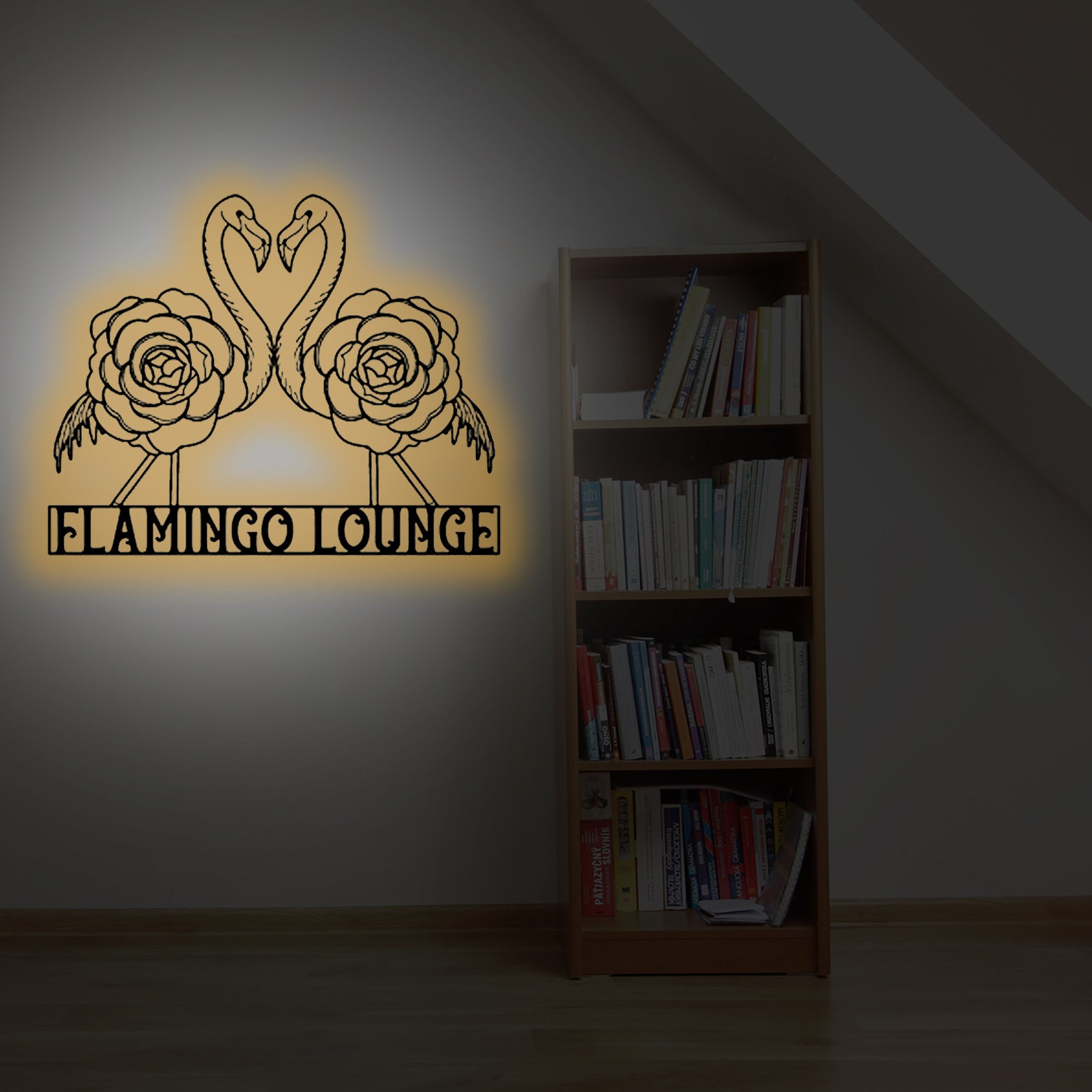 Handmade Custom Flamingo Metal Wall Led Sign-Personalized Flamingo Metal Wall Art-Flamingo Metal Wall Decor-Gift For Couple-Indoor Signs