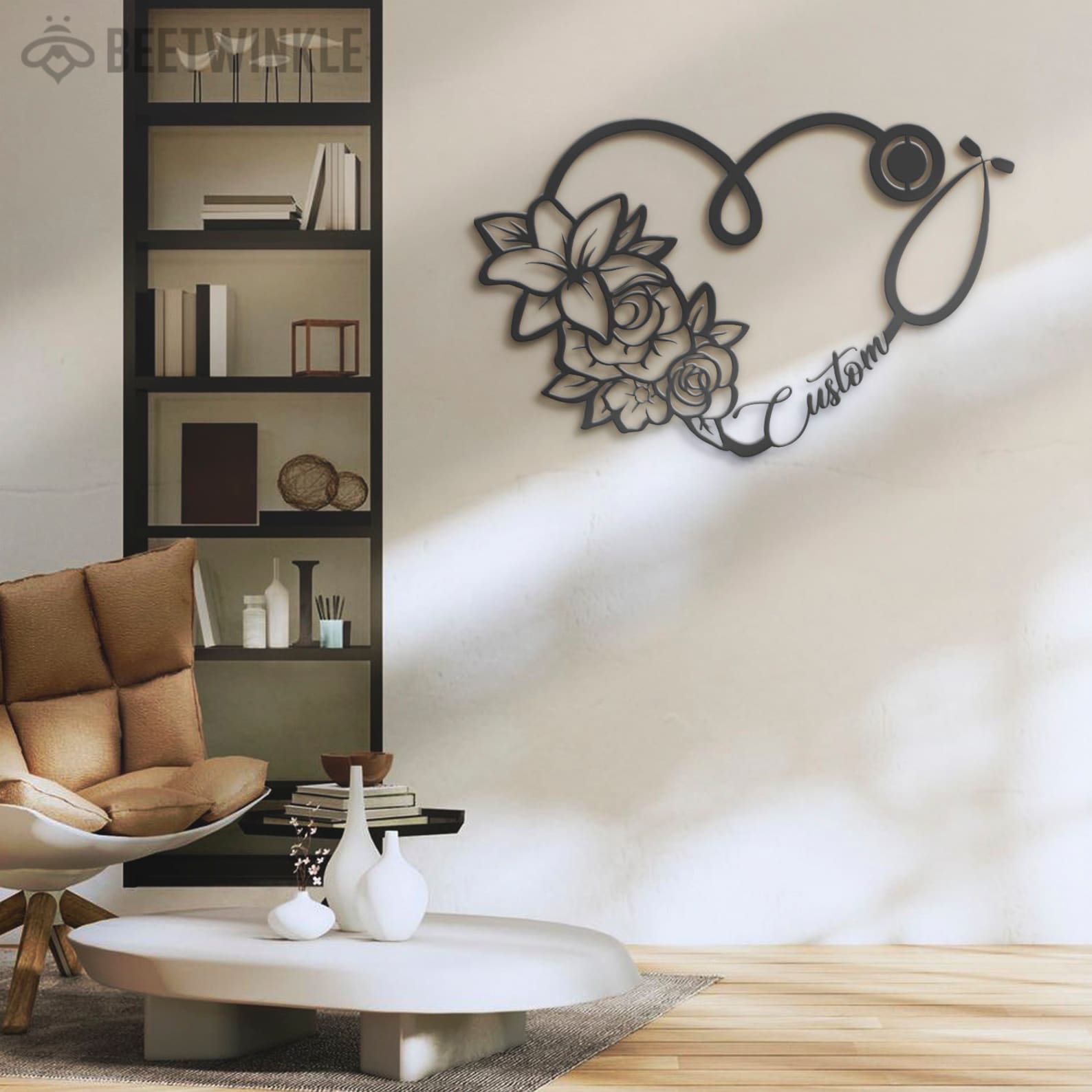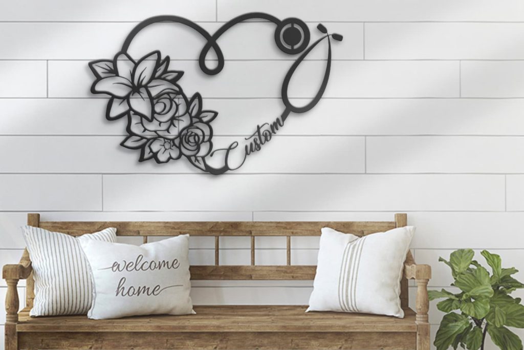 Floral Heart Sign, Nurse Name Sign, Metal Art