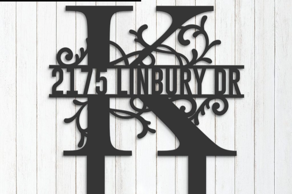 Floral Monogram K Metal Address Sign: Outdoor Decor