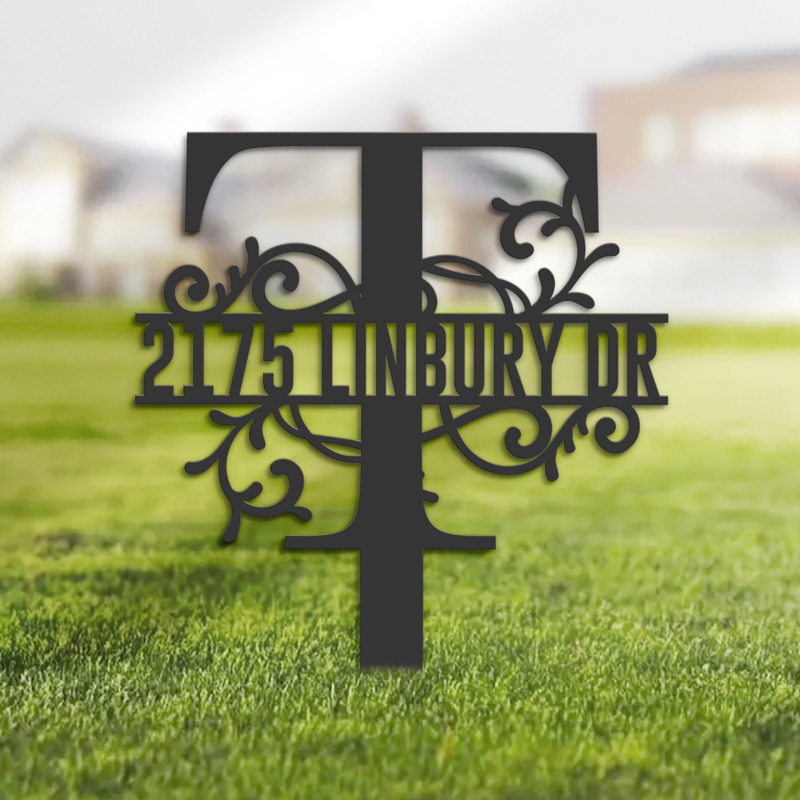 Be the first to review “Floral Monogram T Metal Address Stake”