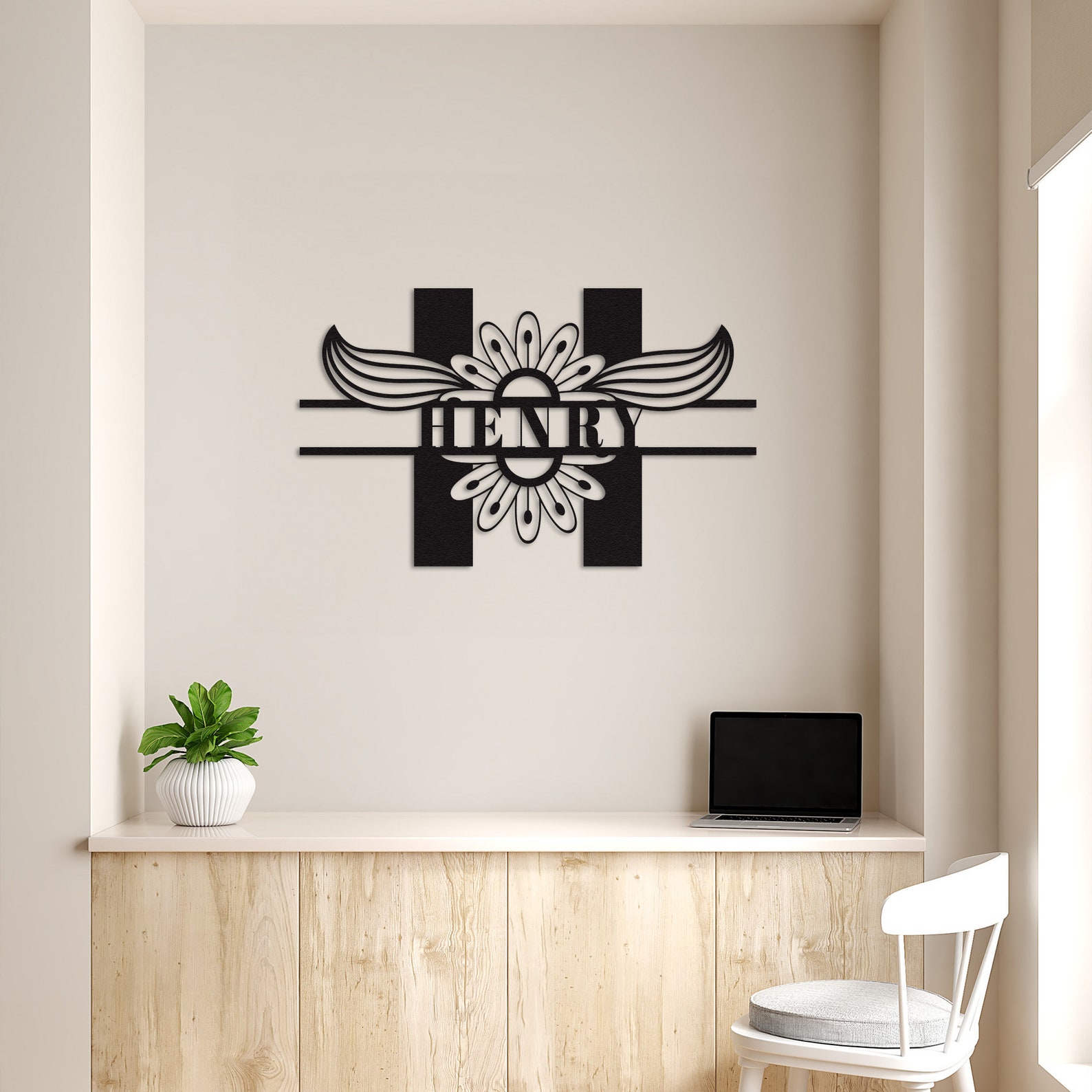 Custom Metal Sign, Floral Decor, Hanging Metal Wall Art, Monogram Wall Decor, Personalized Wedding Gift, Family Name Sign, Outdoor Monogram Wall Hanging, Front Door Hanger, Family Gift