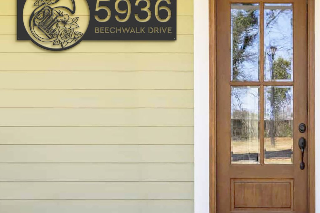 Be the first to review “Floral Trumpet Address Sign – Personal Metal Music Decor”