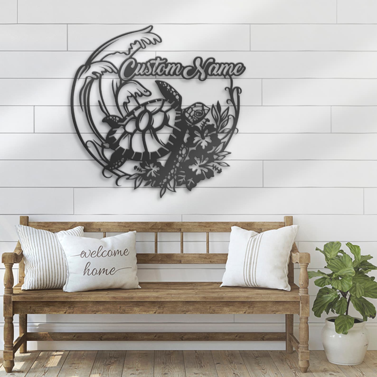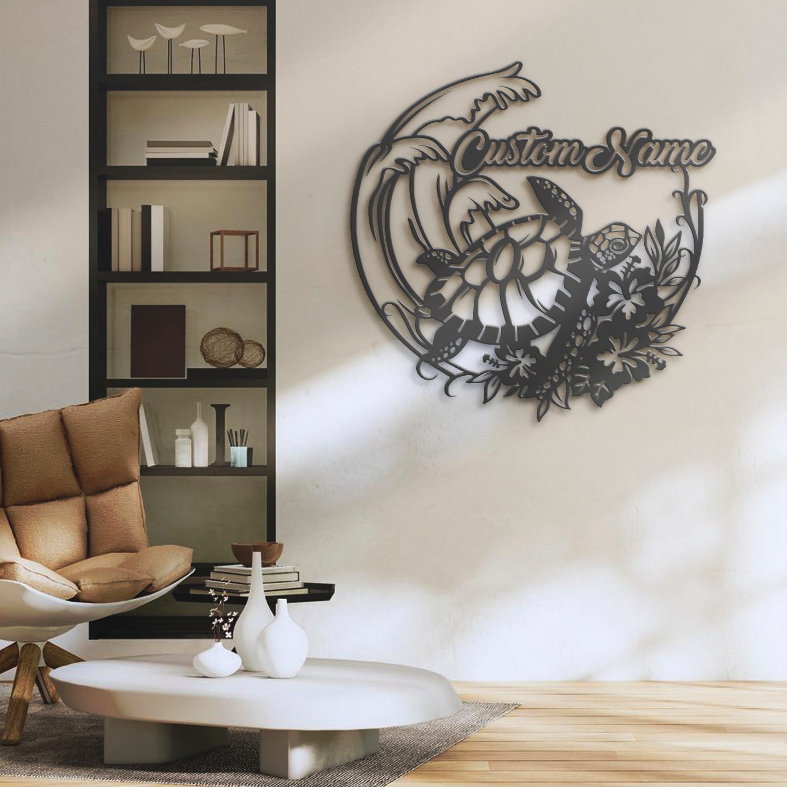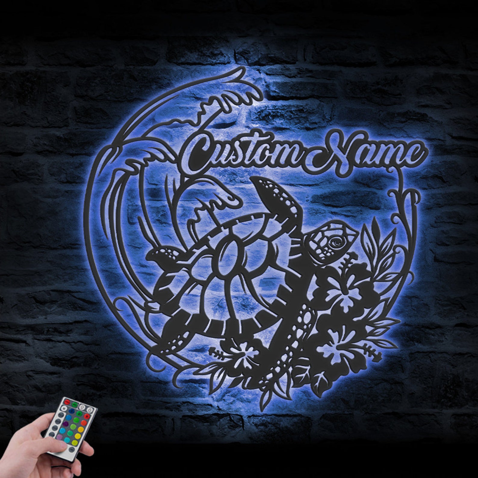 Be the first to review “Floral Turtle Metal Wall Art with LED – Sea Turtle Decor”