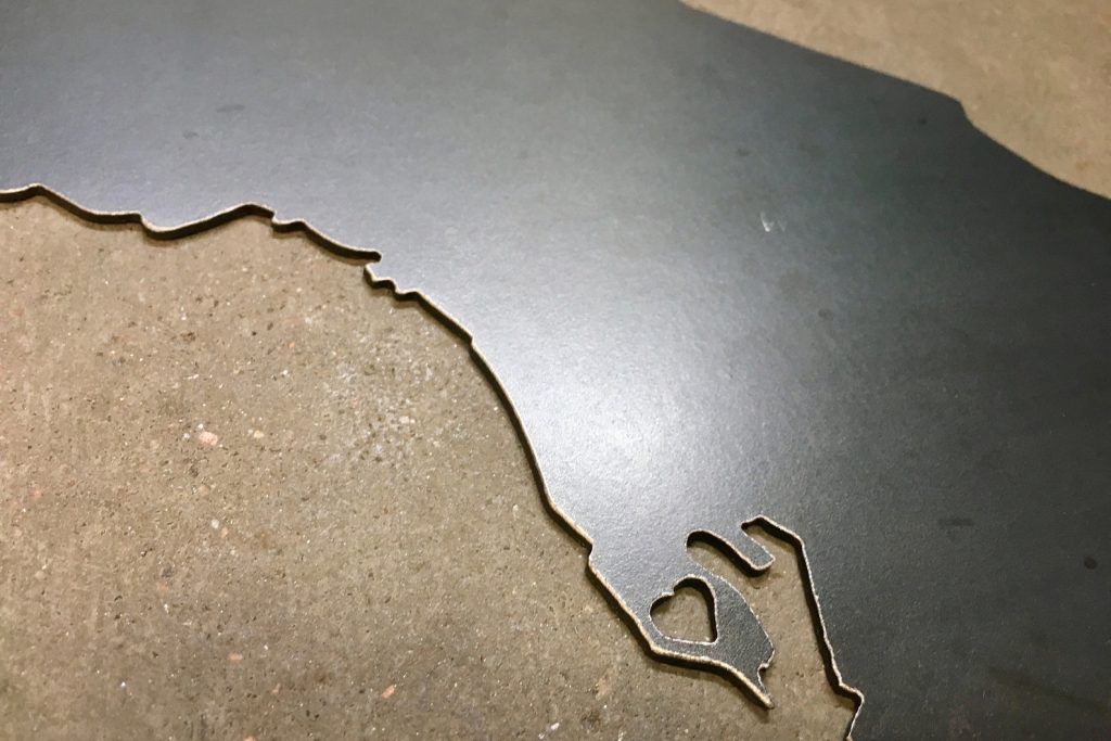Show off your Florida pride with this metal state of Florida sign. This item features a custom placed star. We use a plasma CNC table to create the outline of Florida with a heart or star placed in your desired city. This rustic metal sign can be clear coated to maintain a metal appearance or painted with high quality paint + primer.