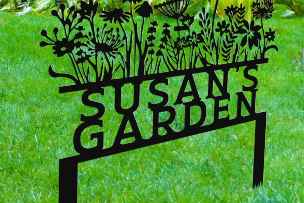 Custom Flowers Sign, Sign for Flower Beds, Metal Yard Art, Gift for Grandmother, Garden Gift, Patio Decor, Sign with Stakes, Metal Garden Decor, Outside Decor, Farmer Decor, Home Decor- Wall Art- Metal Wall Hangings – Custom Metal Works – Best Gift Ever – Unique Gift, Wall Hangings, Gift for Her, Gift for Him