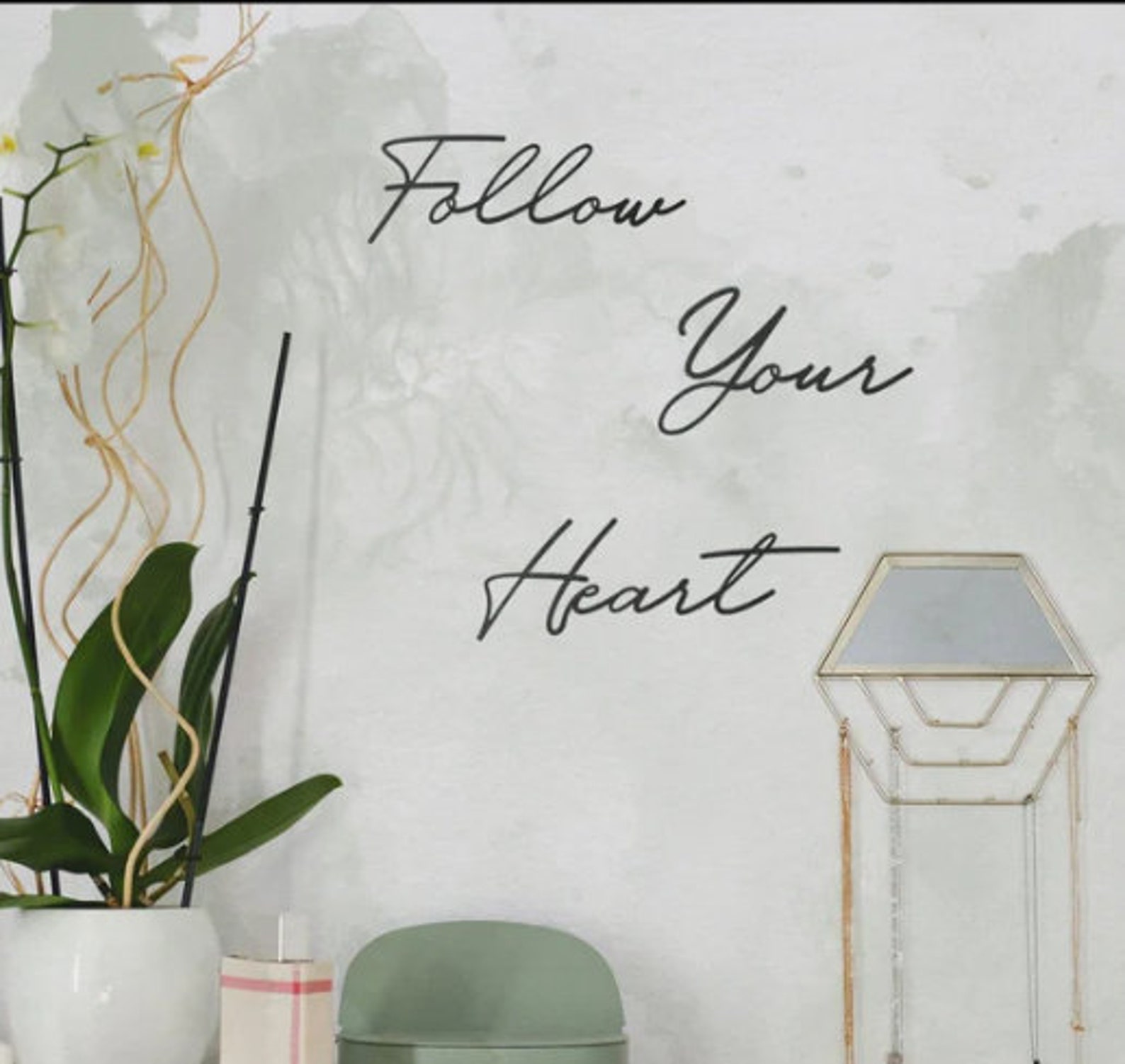Looking for the perfect housewarming gift or modern home accent? Our "Follow Your Heart" Writing Metal Art Wall Decor is a thoughtful and meaningful choice. Its contemporary design and motivational message make it an ideal addition to any front door or entryway.