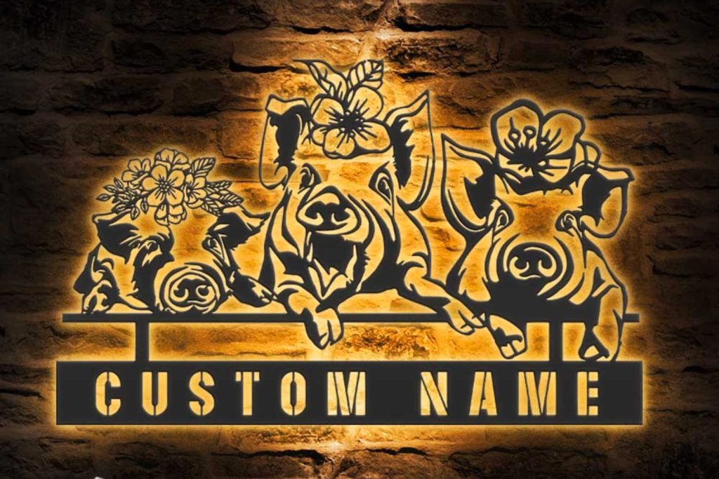 Be the first to review “Funny Pig Art – LED Personal Farm Sign, Nursery Decor”