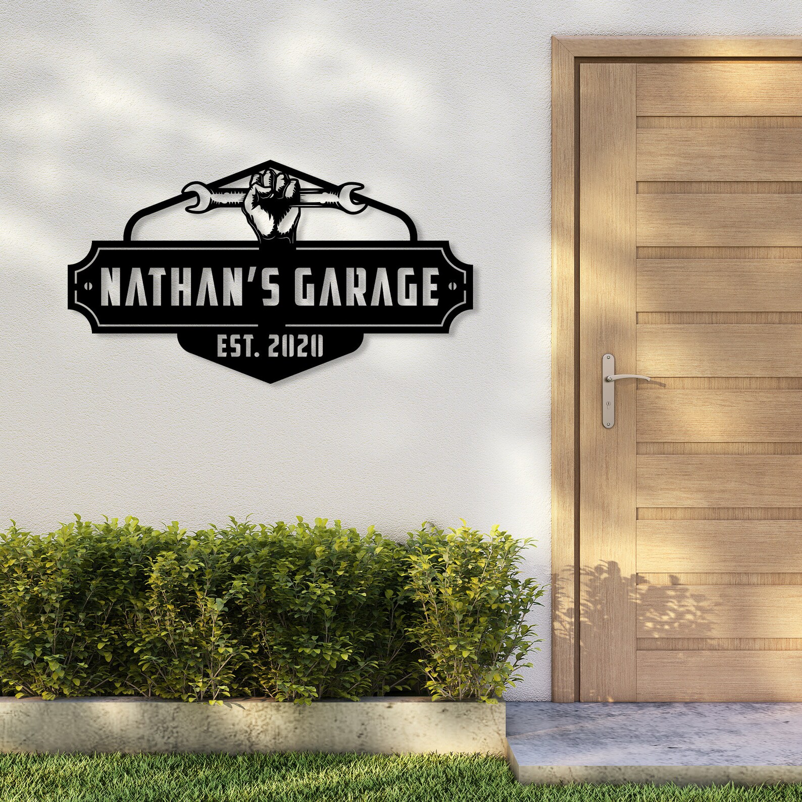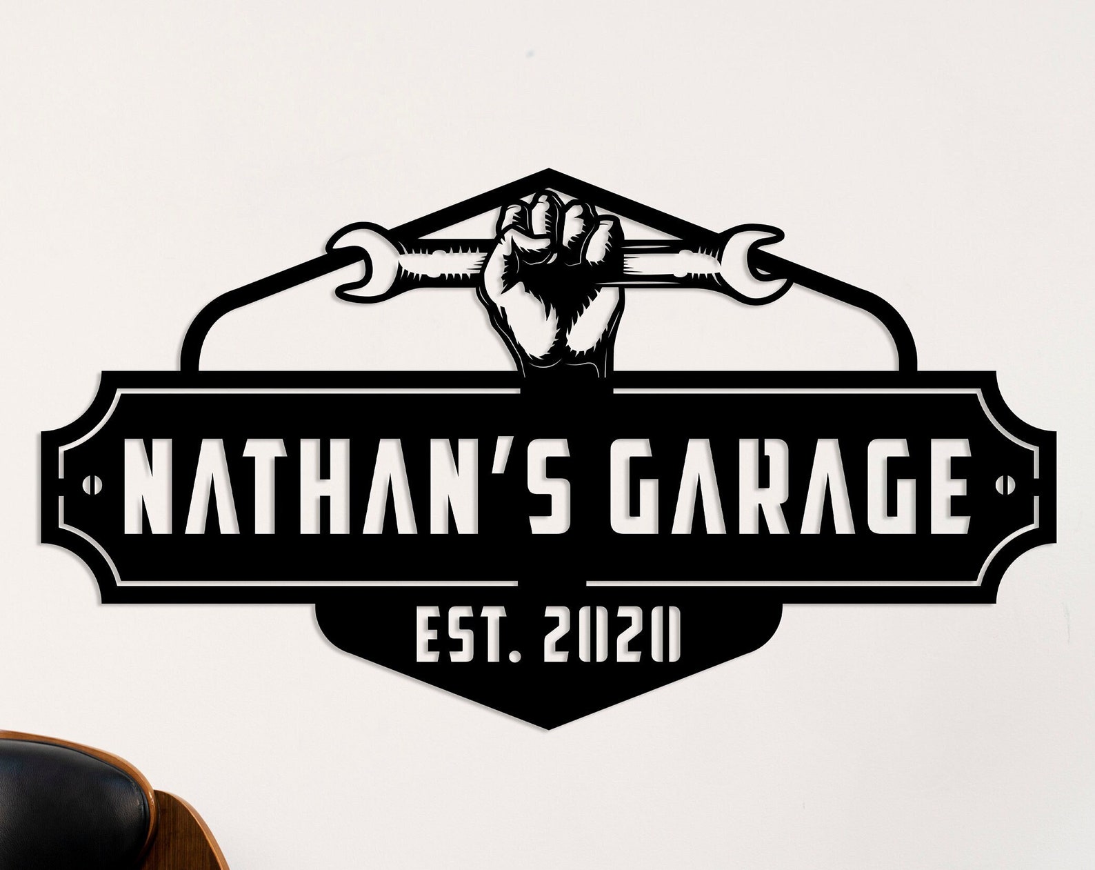 Custom Metal Garage Sign, Personalized Garage Wall Art, Man Cave Sign, Car Shop Decor, Tools Design Garage Hanging, Gift for Dad,Outdoor Art
