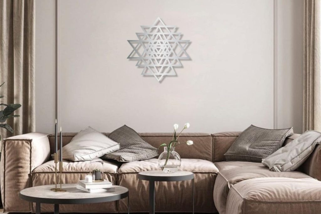 Be the first to review “Geometric Metal Wall Art – Metal Triangle in Triangle Sign for Wall”