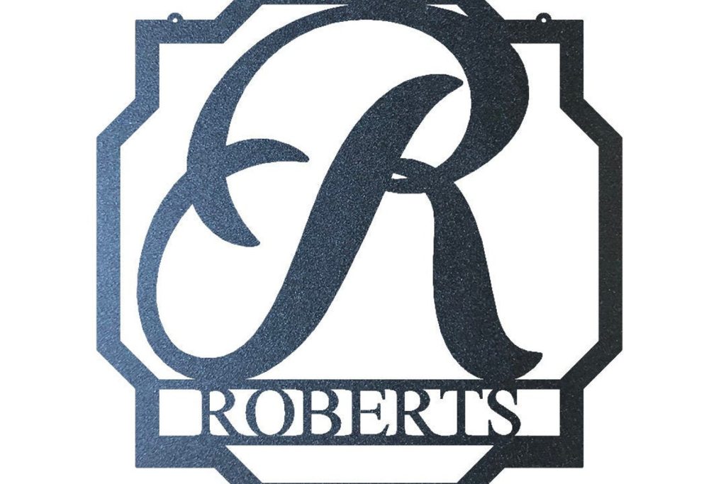 This Beautiful Geometric Monogram is constructed of 18 gauge steel on a Fiber Laser and then Powder Coated to give this item a one of a kind, unique finish.