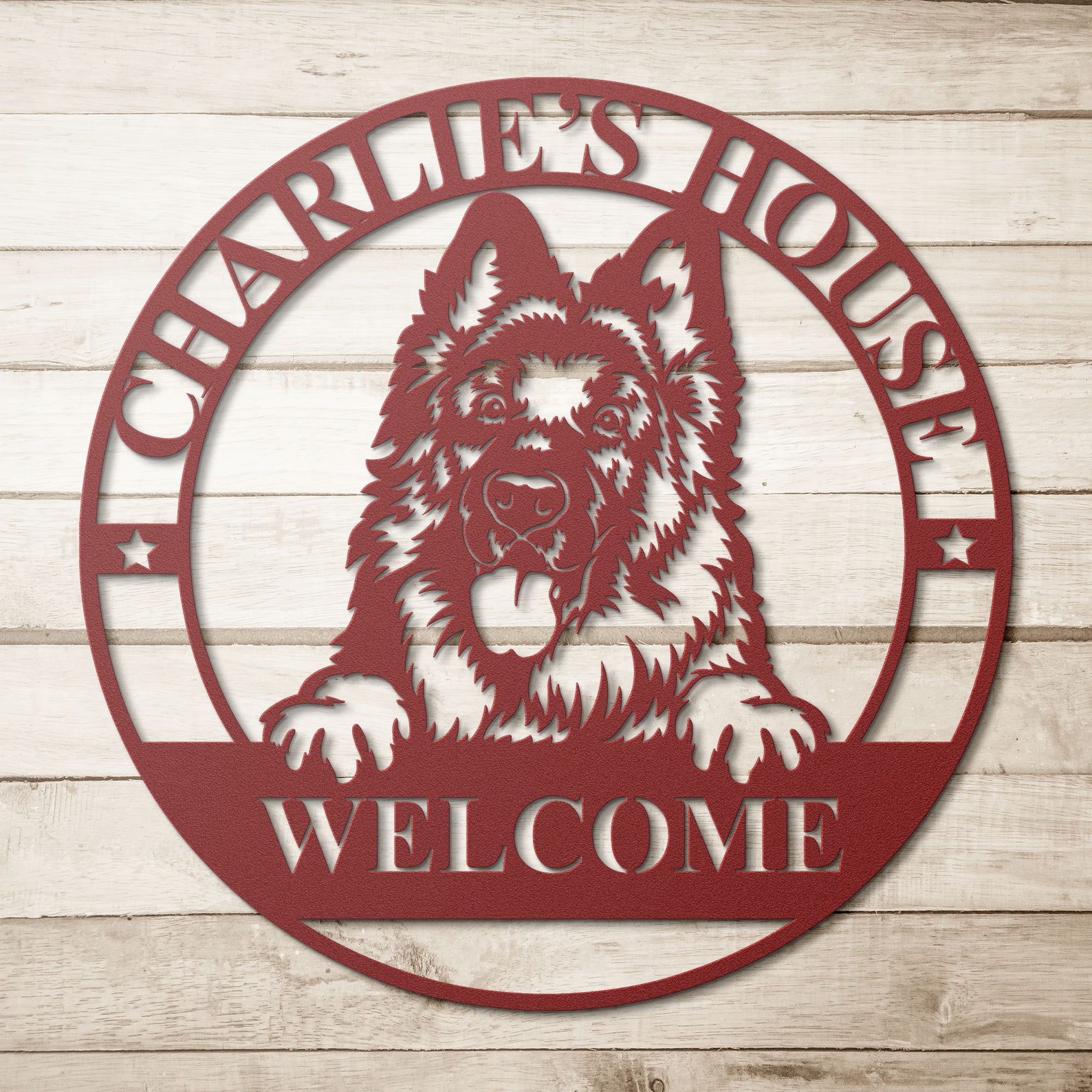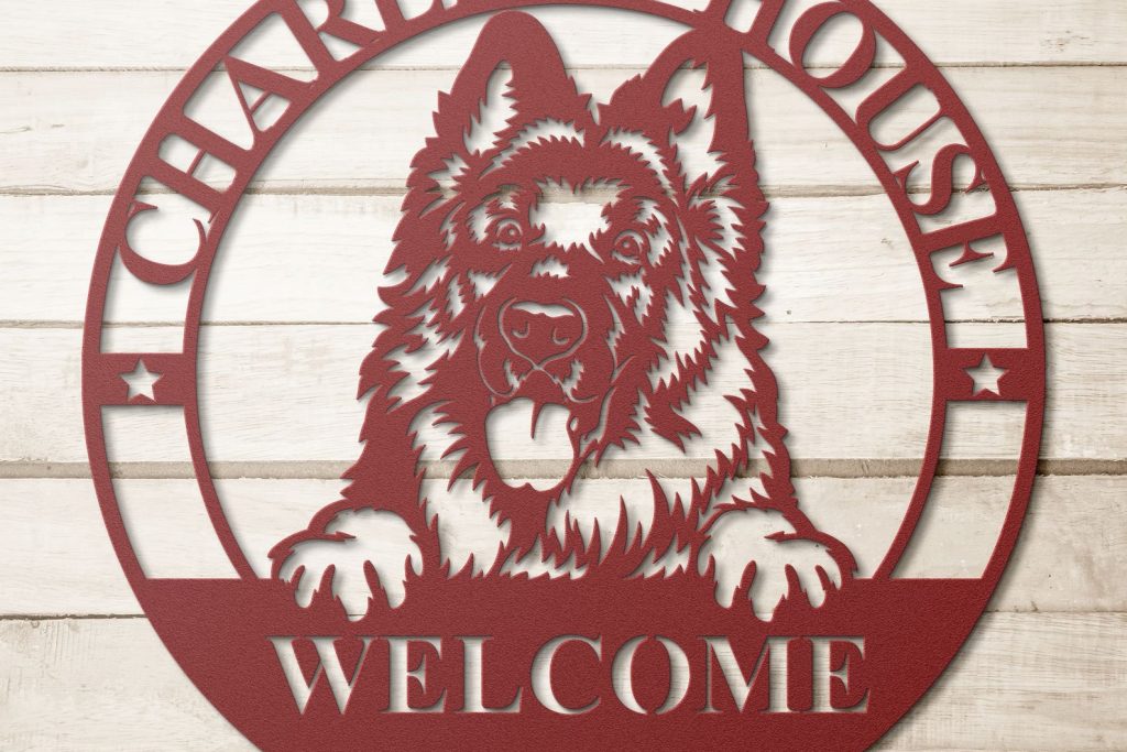 Are you looking for a unique and personalized gift for your dog mom? Look no further than our German Shepherd Metal Dog Welcome Sign.
