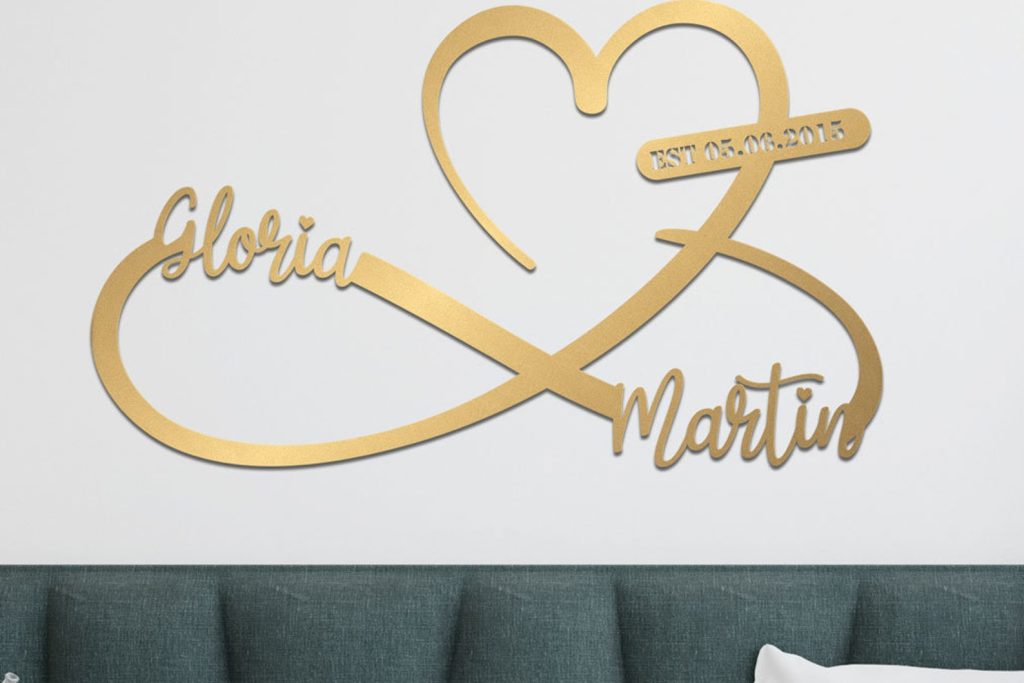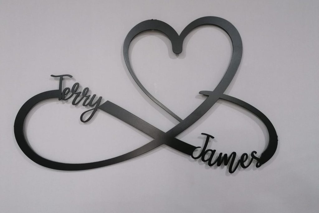 Metal Large Customized Names and Date , Heart and Infinity, Custom Metal Wall Art, Home Decoration, Wedding, New Home ,Housewarming Gift.