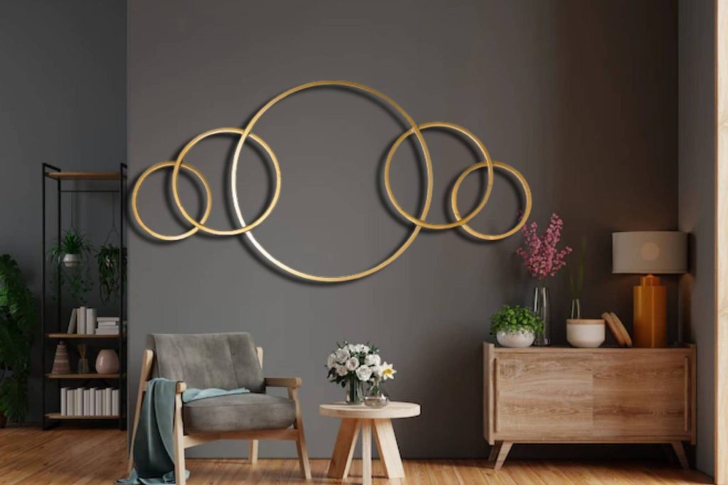You may give this metal wall hanging as wall decoration present on many occasion, for example you may bring it to your mother,your new married friend as wedding gift or best friend as housewarming gift who recently buy a new house or who redecorate her home,your corporate gift for your collegue.This design of one of our abstract geometric wall decor collection may be named as eternity golden metal wall decor,round golden metal wall decor,circle in circle golden metal wall hanging,oval metal wall decor,contemporary metal wall decor,minimalist Living Room Wall Art,round geomectic wall decor,metal chic wall decor,golden metal bedroom wall sculpture, minimalist geometric metal sign for wall deco,mid century modern wall decor,bright wall hanging,golden metal wall hanging..