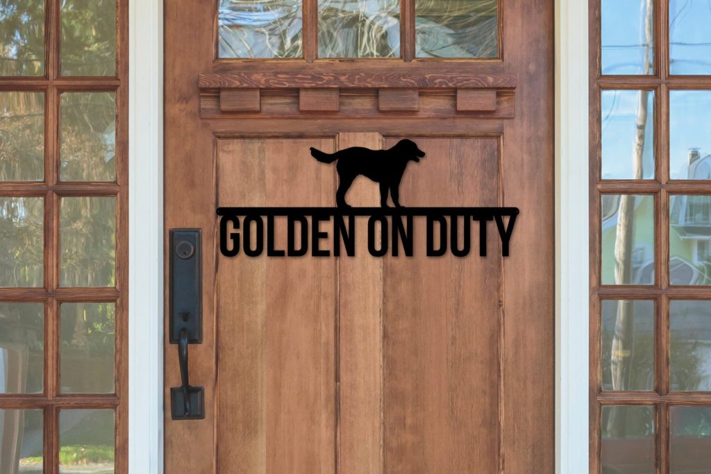 Be the first to review “Golden Retriever on Duty Sign: Metal Dog Art”