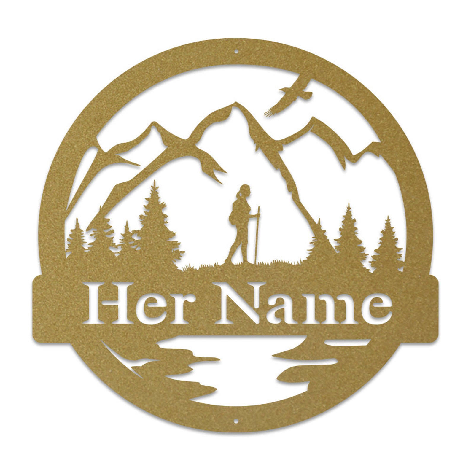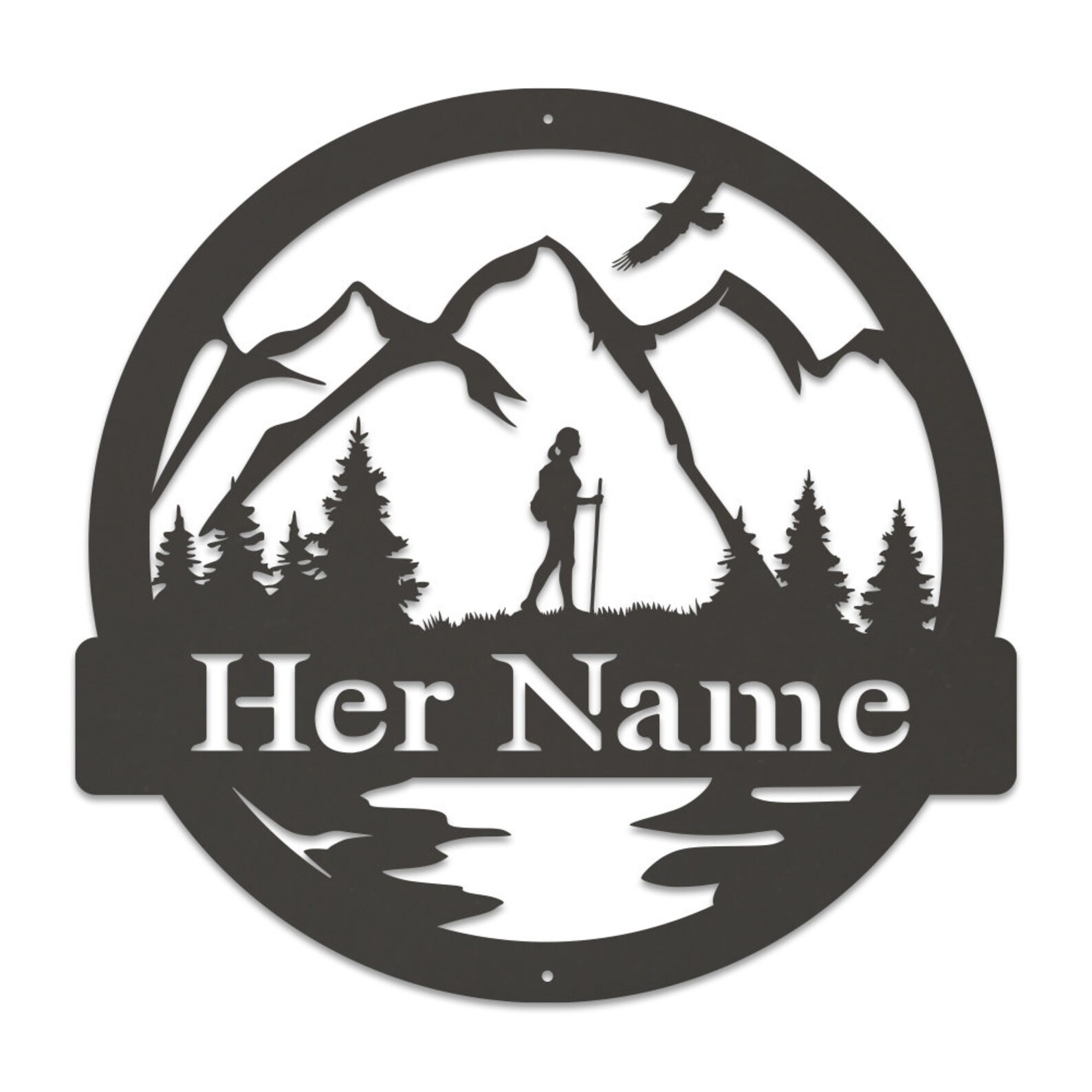 Great Outdoor Hiking Woman Monogram Metal Sign
