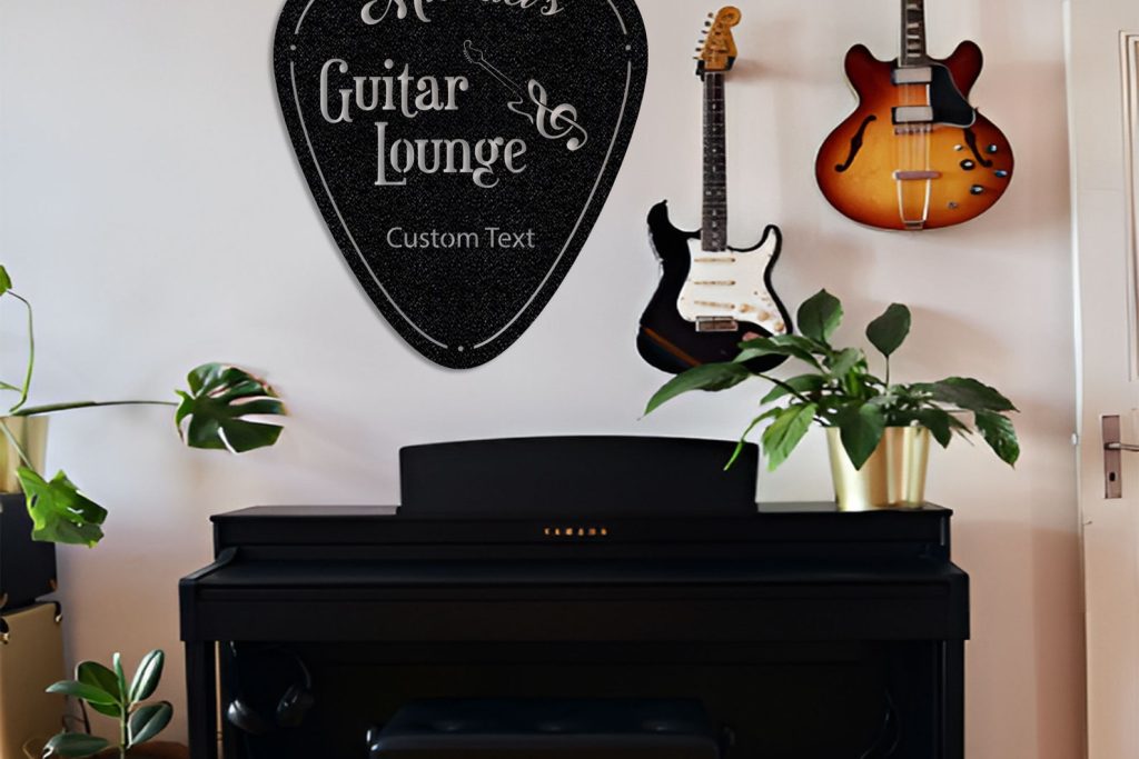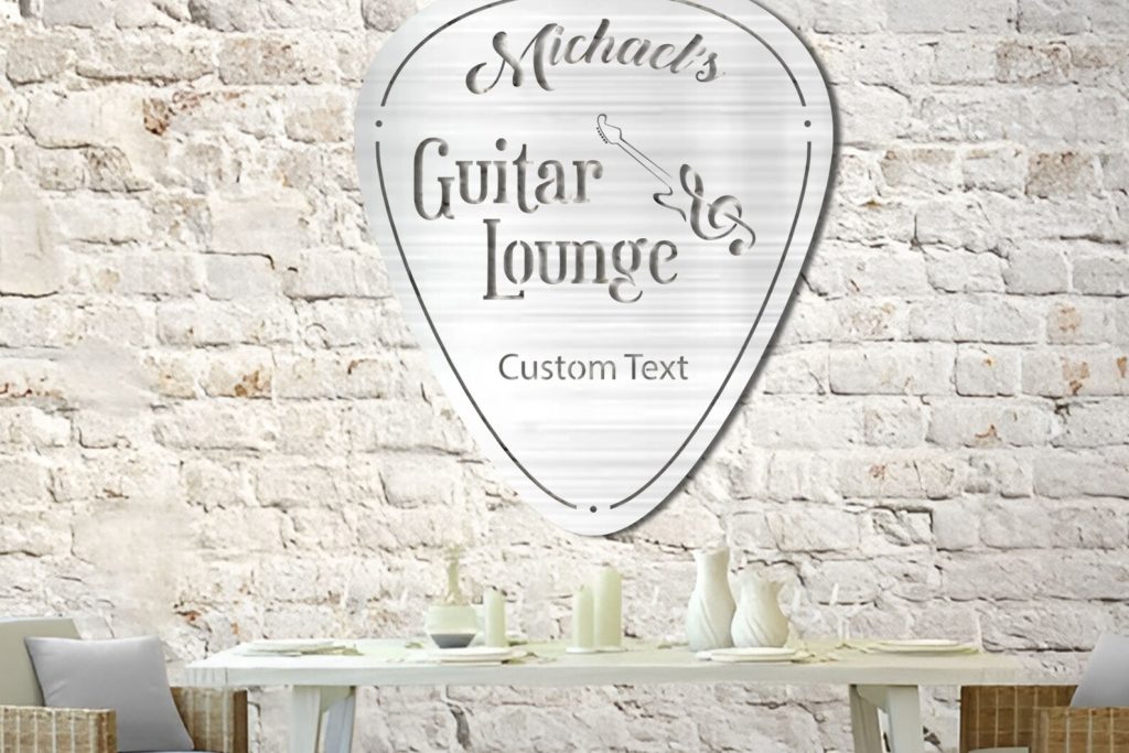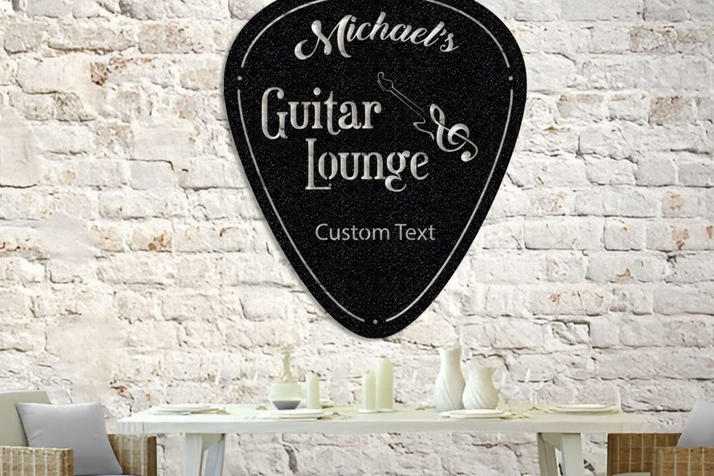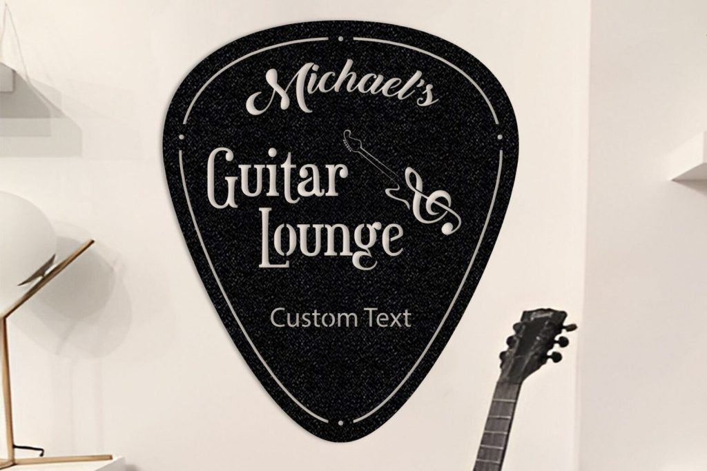Personalized Decorative Guitar Lounge Sign, Custom Guitar Metal Sign, Guitar Lounge Name Wall Decor, Guitar Pick Sign, Christmas Gift