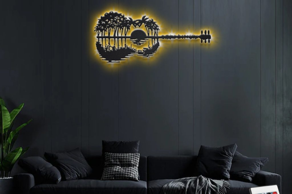 Be the first to review “Guitar Sunset Sign, Guitarist Decor”