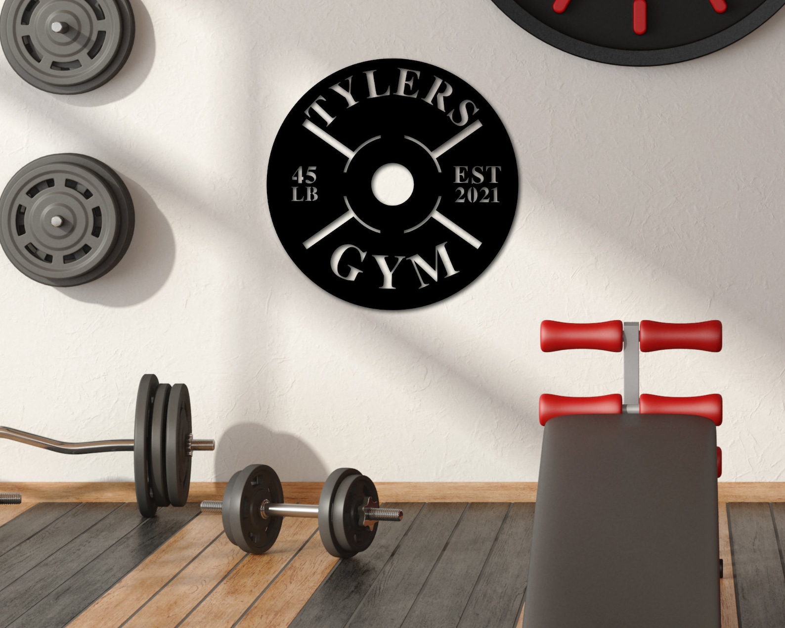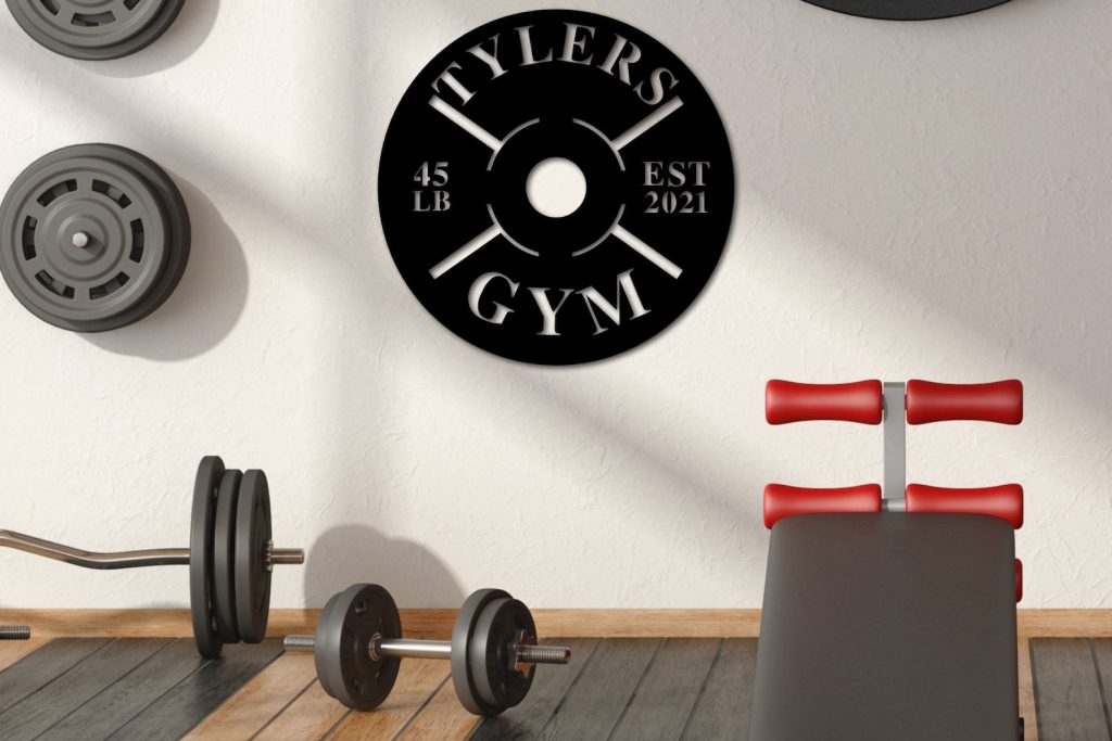 Gym Plate Sign – Personalized Metal Workout Metal Wall Decor