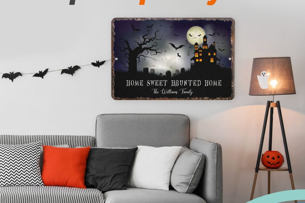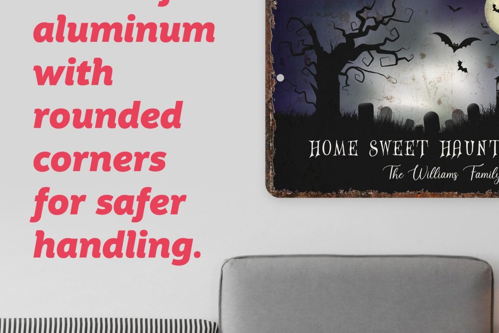 When its time to carve jack olanterns and plan your costume party, make sure your home is in the holiday spirit with fun and spooky wall signs exclusively from Pattern Pop. This sturdy aluminum sign is hand pressed right here in the USA and personalized just for you, giving you high-quality home decor that shows off your personality without having to wait months for it to be shipped from overseas. And with the custom personalization, these signs are a wonderful gift for anyone who loves anything spooky.