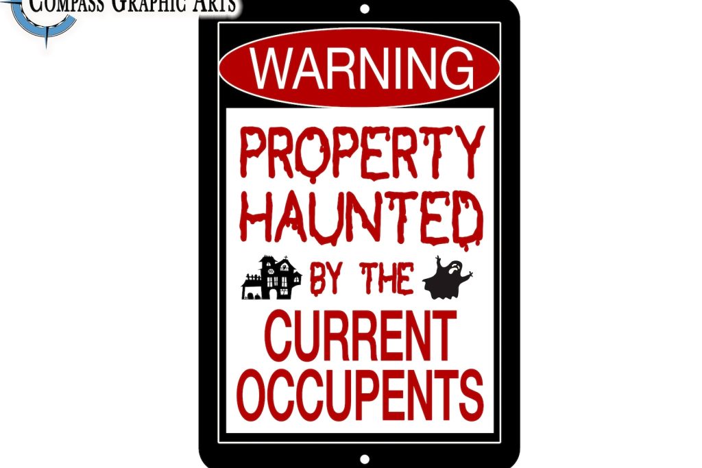 Custom Halloween Sign- Warning Property Haunted- Yard Decor- Personalized Metal Sign- Aluminum- House Warming Gift- Humor Wall Hanging 18