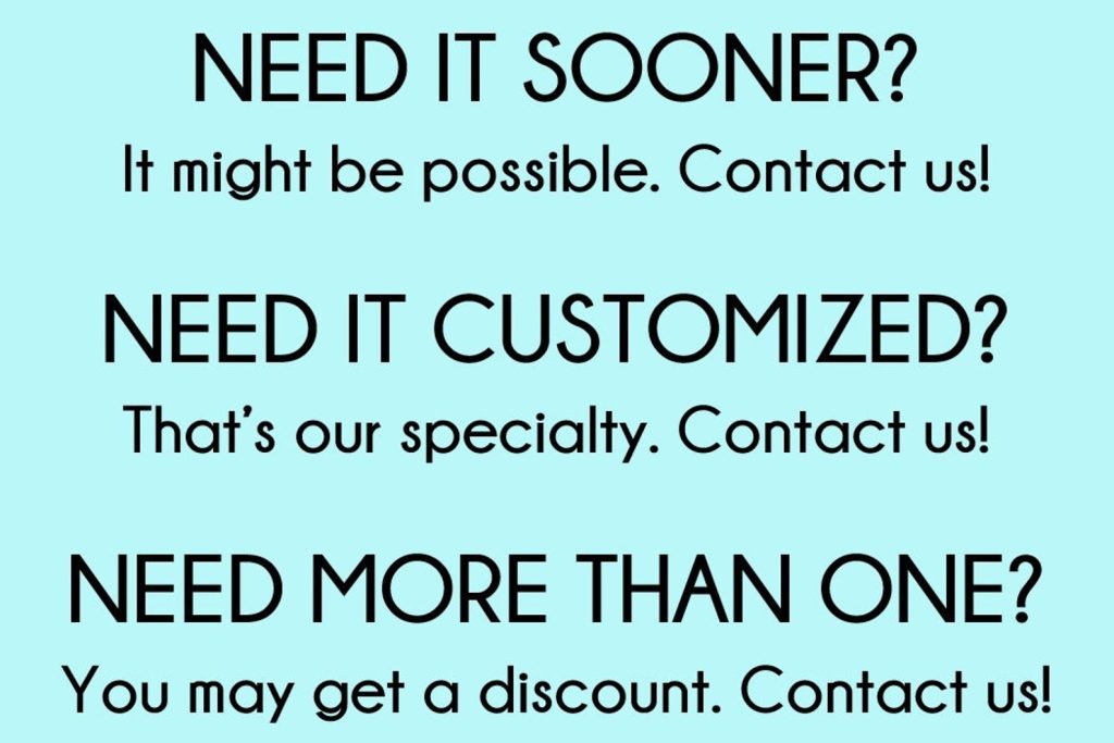 Large: Over 36" – Must contact us before ordering.