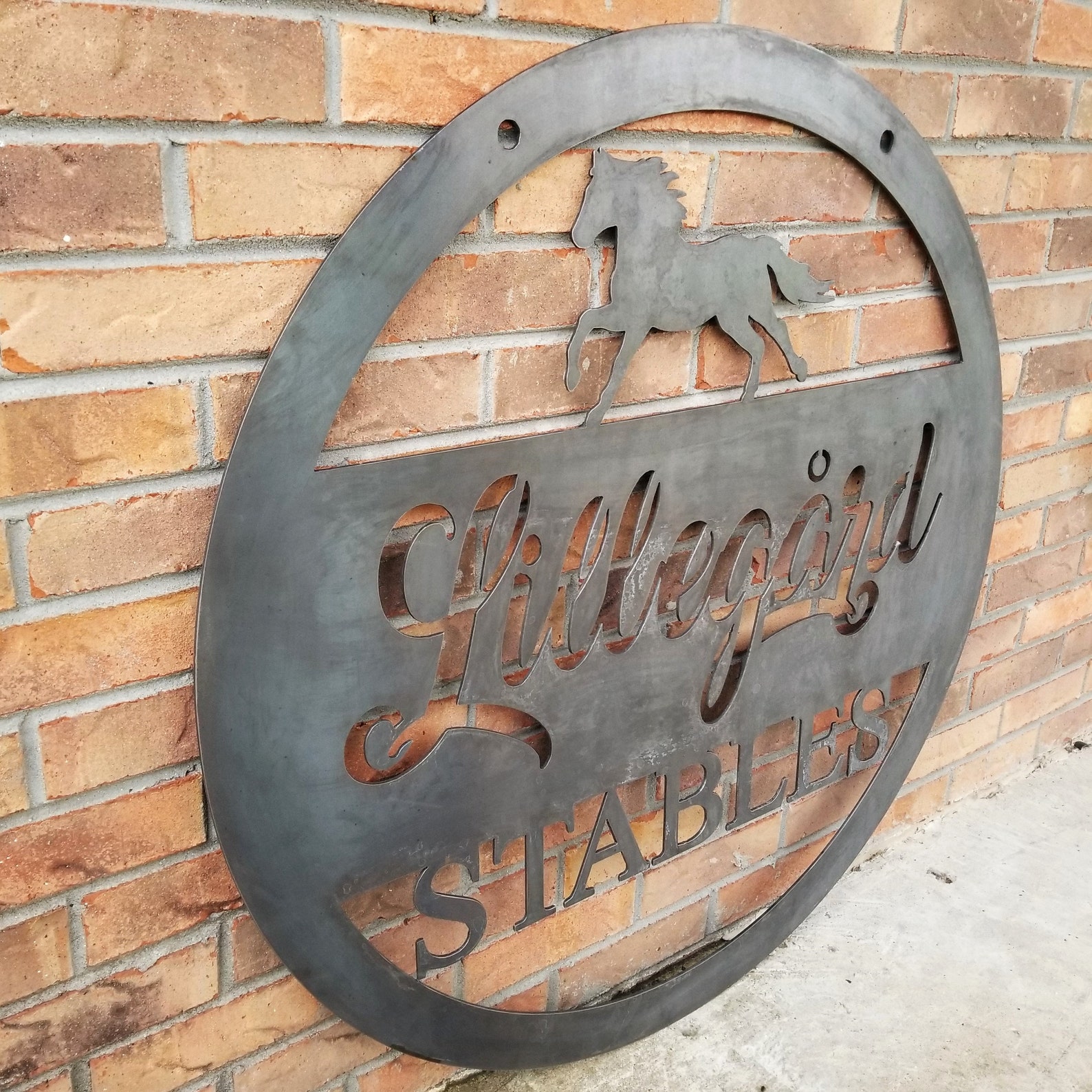 Hanging Metal Horse Sign, Personalized Equestrian Stable Plaque