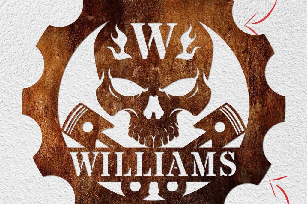 Harley Davidson Biker Metal Wall Art To Be PERSONALIZED – Skull Family Monogram Metal Sign