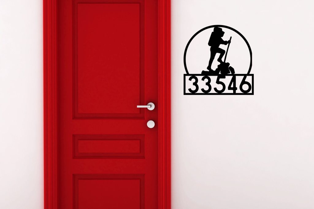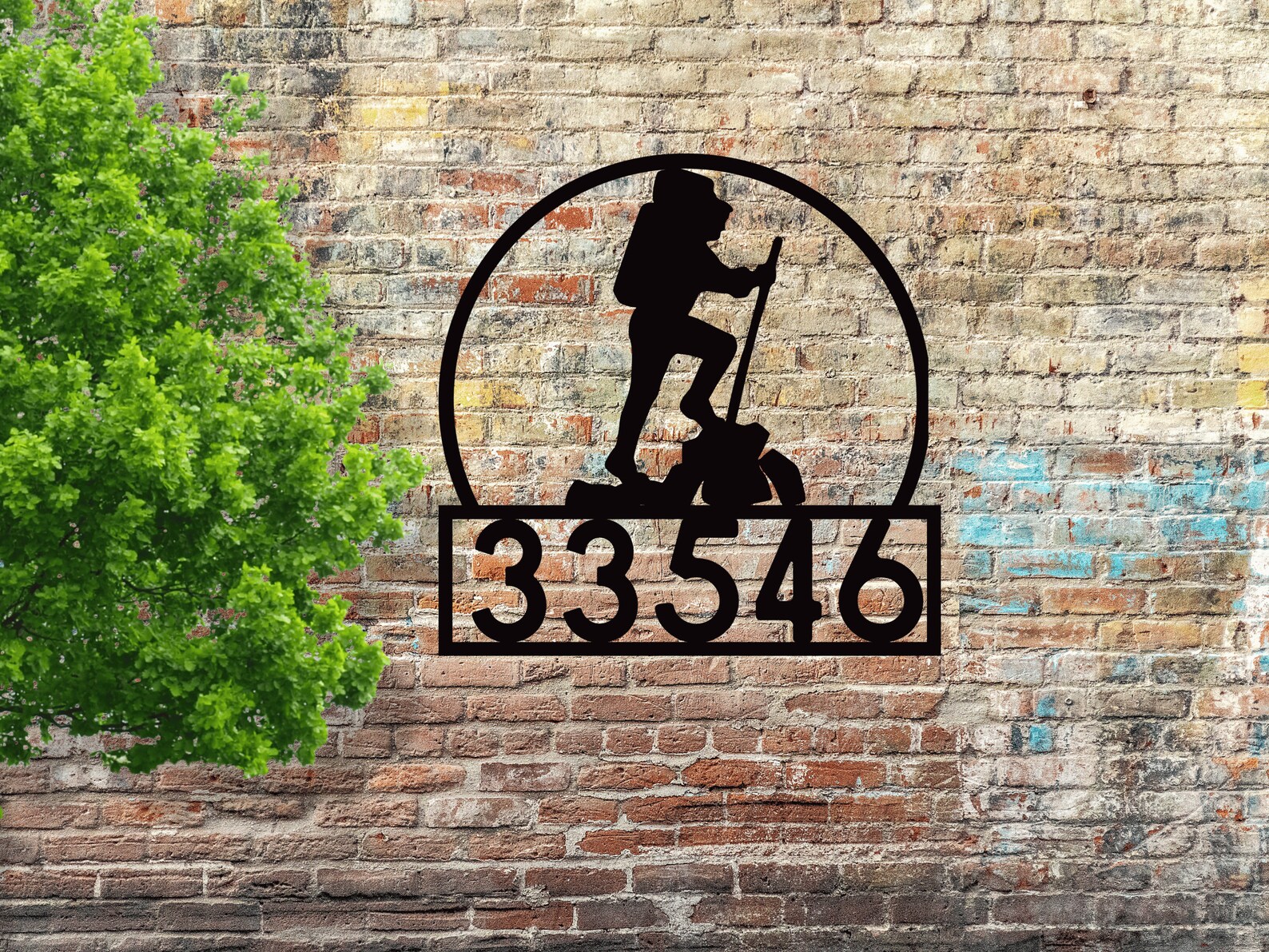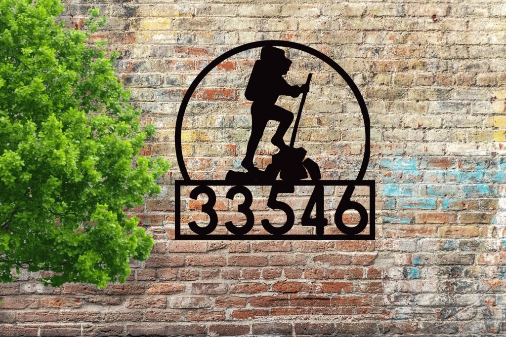 This custom address sign is perfect for adding a unique touch to your home. Its beautiful design features a hiker in the mountain range, adding a special rustic charm to your home and making your address visible to visitors. Crafted from durable, weatherproof metal, this sign is designed to withstand the elements and last for years to come. So if you9;re looking for a unique and creative way to display your house number, this sign is the perfect choice!
