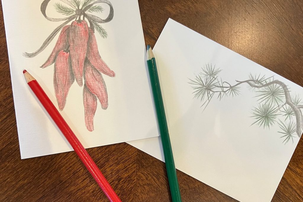 You can customize your gift by adding a hand written gift card to be incl with your purchase at no extra charge. Choose Christmas or Post Card. All 3 cards were professionally printed from my Mother-in-laws art on premium card stock and hand colored by me. The post card will be uncolored.