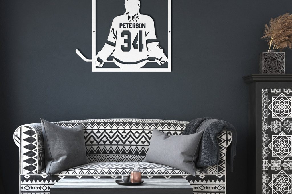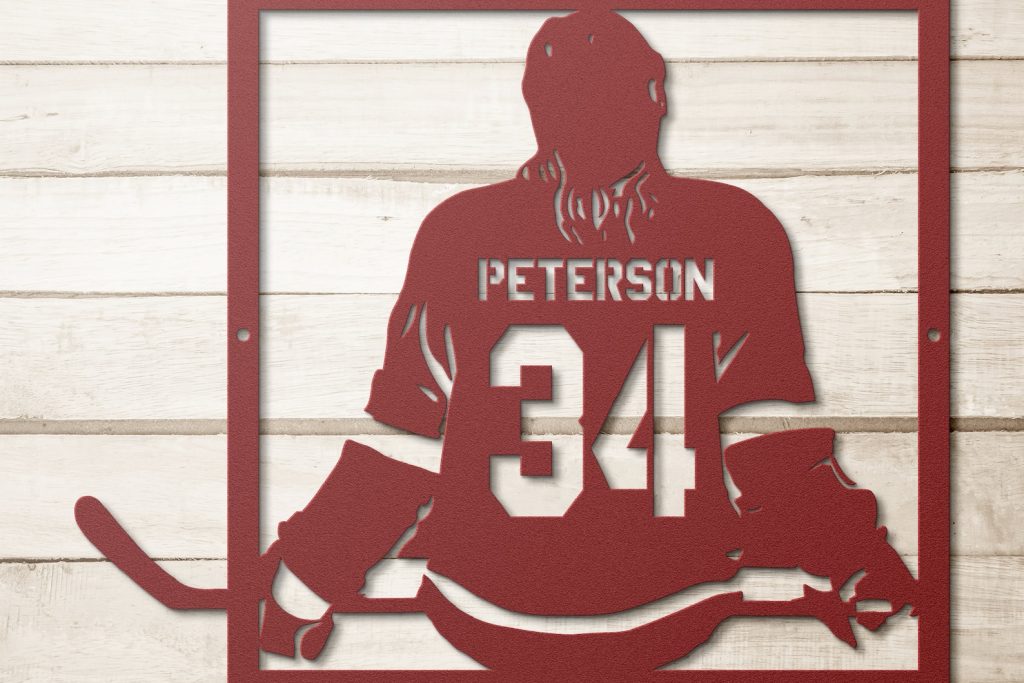 Elevate your home decor with this beautiful custom hockey jersey metal sign!